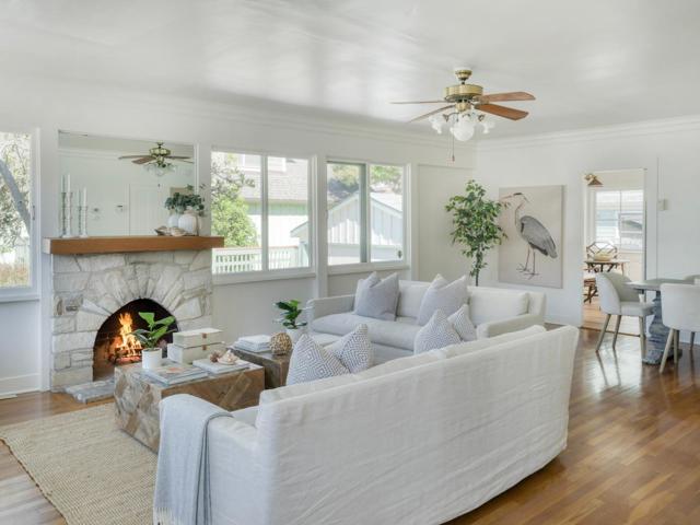 Charming Historical cottage with 3 bedroom, 2 baths with ocean view and rare 2 car garage. Located only 3 homes away from the ocean and coastal walkway at Lovers Point, this remarkable 1,299 sq ft home is light and airy and boasts a large open living room and dining area with cozy fireplace and refinished hardwood floors. The kitchen with breakfast table opens to a separate laundry room and back deck to enjoy the sounds of the ocean. Live the best of the Pacific Grove life style by the ocean and a short stroll to the shops and restaurants downtown.