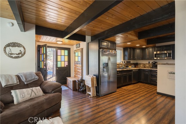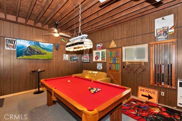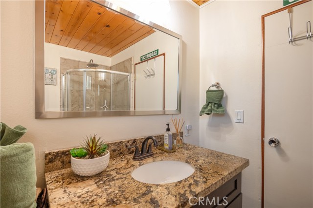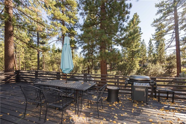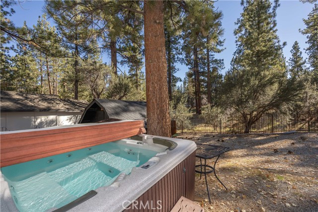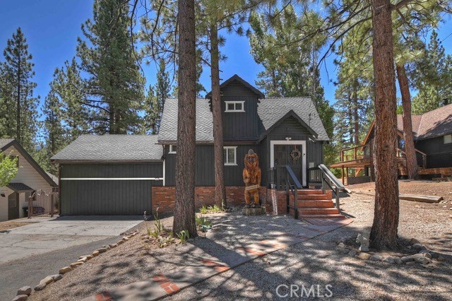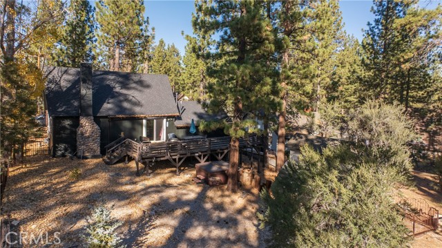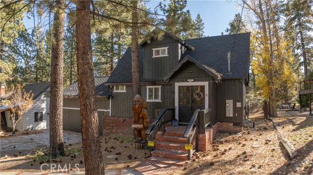 **A True Big Bear Mountain Retreat** Experience the perfect blend of rustic charm and modern comfort in this 1,300+ sq. ft. cabin surrounded by towering pines and backing to private acreage. Beautiful wood floors and tongue-and-groove wood beam ceilings & vaulted ceilings upstairs create a warm, authentic mountain vibe. Features include two bedrooms, two baths, and an open kitchen with stainless appliances and granite counters. Enjoy cozy evenings by the wood-burning fireplace or entertain in the step-down game room with pool table and separate entrance. A spacious deck and fenced yard offer ideal outdoor living. Recent upgrades include a new roof and windows. Conveniently located just minutes from ski resorts and The Village, this successful vacation rental is offered fully furnished and ready to enjoy!