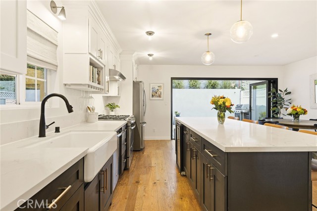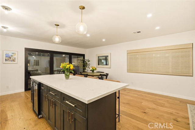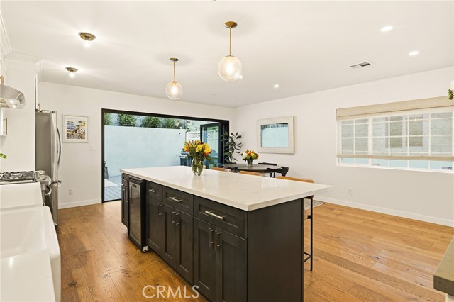 This beautifully updated 3-bedroom, 2-bathroom home blends modern design with relaxed coastal charm. As you approach the home, the front feels inviting and tropical, framed by lush palm trees that set the tone for laid-back beach living. The open-concept main level is bright and airy, offering a seamless flow between living, dining, and kitchen spaces, you will also find laundry and a bathroom on this level. At the heart of the home, the modern kitchen features a central island with barstool seating, stainless steel appliances, built-in wine fridge and sleek finishes—perfect for casual meals or entertaining with friends. Expansive La Cantina doors open to the backyard, creating effortless indoor-outdoor living. Under a canopy of café lights, the patio is ideal for al fresco dining or evening gatherings. Upstairs, you’ll find three comfortable bedrooms and a full bathroom, along with a bright, open landing that makes an ideal home office or reading nook, currently being used as an office. A sunny front deck, with city views, extends your living space outdoors, perfect for morning coffee or sunset lounging. This home has the ability to add a 4th bedroom, primary suite above the garage which is currently a front sun deck. (Similar bedroom addition can be seen from the March 2020 sale of 1523 Wollacott Street. All permitting requirements and qualifications should be investigated with the city.) The finished garage is complete with recessed lighting and drywall, making it a versatile space for a home gym, office, or creative studio.Located close to the beach, parks, and Hermosa’s lively downtown, this home captures the essence of South Bay living—modern, welcoming, and made for entertaining.