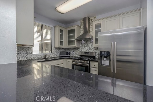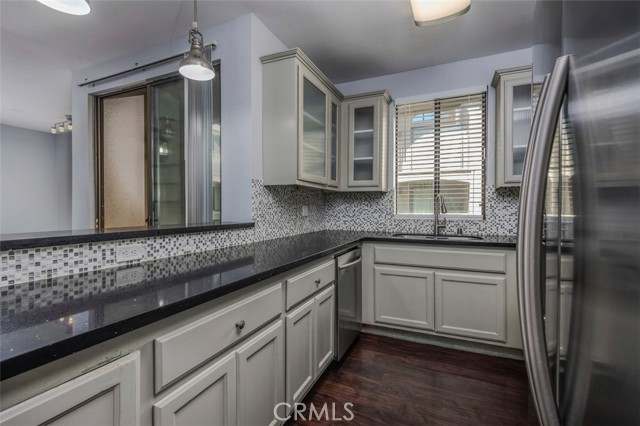 Enjoy the modern look and designer touches in an upgraded unit at the desirable Emerald Villas. The kitchen, bathrooms, living room and bedrooms have been redone bringing a cohesive cosmopolitan look. Kitchen has newer cabinets with black quartz countertops, mosaic backslash, stainless steel appliances and cooktop vent. Livingroom has statement making fireplace and stylish shelving. Warm looking hardwood flooring and designer paint that run throughout the entire unit give it a rich look. Bathrooms have newer shower doors, title, vanity and flooring. No common walls and two parking spaces help elevate this special property and make it unique. Community has resort style pool, beautiful entry courtyard, rooftop and gym for your workouts. Great downtown location close to the nightlife, park, bike path, freeways and everything you need and want for a fantastic urban life.