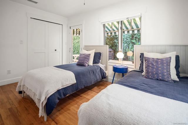 Located across from picturesque Pomona Park, this quintessential Coronado beach cottage perfectly blends timeless charm with modern comfort. Historically designated and Mills Act funded, the home offers not only architectural significance but also valuable property tax savings. Inside, original hardwood floors showcase the home’s craftsmanship, complemented by tasteful upgrades that preserve its coastal character while enhancing livability. The functional single-level floor plan features 3 bedrooms and 2 full bathrooms. A bright, open living area flows seamlessly to a cozy front sitting porch—ideal for morning coffee or greeting neighbors—and a private side patio for alfresco dining and entertaining. This professionally designed kitchen showcases high-end marble counters and backsplash, premium fixtures, quality appliances, and vaulted ceilings that create an elevated sense of space and sophistication. A generously sized laundry room offers both convenience and extra storage. Outside, a sparkling pool invites relaxation and fun; tall foliage and high privacy walls creates a true backyard sanctuary in the heart of the Village. With its enviable location near parks, beaches and Coronado’s vibrant business district, this home captures the essence of island living—historic, refined, and endlessly inviting. A rare opportunity to own a piece of Coronado history that lives beautifully for today.