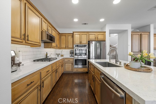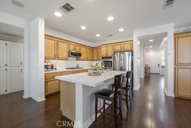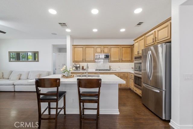 Own this spacious and beautifully maintained 5 bedroom, 3 bathroom home in a highly desirable Santa Clarita neighborhood with NO HOA and NO MELLO ROOS. Priced below market value this is your chance to purchase a home with built in equity. With approximately 2,800 sq. ft. of living space this home offers a well designed layout ideal for both everyday living and entertaining. Upon entering you are greeted by high ceilings and a stunning accent wall that sets the tone for the entire home. Just off the entryway is a custom built bar area perfect for relaxing or entertaining guests. The main level features a bedroom and full bathroom ideal for guests, in laws, or multigenerational living. The open concept kitchen offers a large center island making it a natural gathering spot for family and friends. The living room is equipped with built in ceiling speakers creating an immersive experience for movie nights or casual entertaining. Upstairs you will find a generously sized loft that is perfect for a secondary living area playroom or game room. The primary suite offers a large walk in closet with custom cabinetry, dual vanities, a soaking tub, and a separate shower. Three additional bedrooms a full bathroom with dual sinks and a private ensuite bathroom complete the upstairs making this home ideal for larger or extended families. The 3 car garage has been thoughtfully upgraded with epoxy flooring fresh paint built in cabinets and overhead storage racks providing ample space and organization. The backyard is designed for year round enjoyment featuring a covered patio built in grill and mounted TV all while offering stunning views of the Santa Clarita Valley. Conveniently located within walking distance to top rated elementary schools and a newly developed shopping center that includes a grocery store, gas station, restaurants, dry cleaners, and more. This location offers both comfort and convenience. This property is truly a must see. Schedule a tour today to experience its full value firsthand. For more information or to arrange a private showing please contact the listing agent Marco Peralta at (213) 255 -1012, se habla español. *All offers will be reviewed as they are received. Buyers are encouraged to submit promptly.*