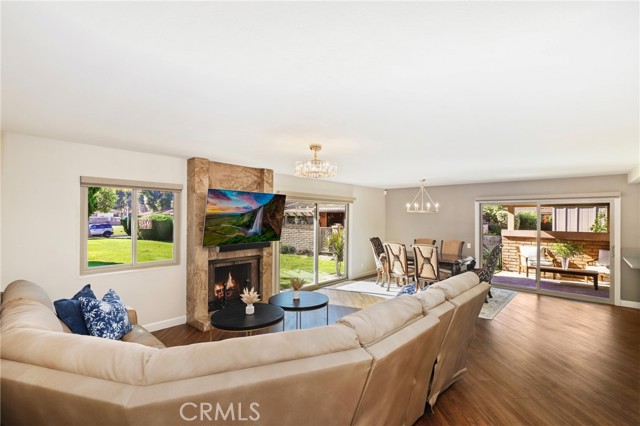 Located in the sought-after 55+ community of San Juan Hills East, this beautifully updated single-level home blends comfort, style, and convenience. Just steps from the pool and near San Juan Hills Golf Club, the detached 3-bedroom, 2-bath layout offers a low-maintenance lifestyle surrounded by lush greenbelts and mature landscaping. A fresh coastal palette, new paint, hardware, fixtures, and luxury vinyl plank flooring create a clean, inviting feel. The light-filled living and dining areas feature a classic fireplace, and sliding doors that open to a spacious covered patio—perfect for relaxing or entertaining. The updated kitchen includes generous cabinetry, island seating, and a functional layout. The primary suite offers dual closets, quartz counters, and a private patio retreat. Additional features include dual-pane windows, a second full bath with quartz counters, an interior laundry area, and a detached two-car garage nearby. Enjoy a peaceful, walkable neighborhood with access to the pool, spa, golf club, and scenic walking paths—minutes from historic downtown San Juan Capistrano, River Street Marketplace, and the revitalized Dana Point Harbor.