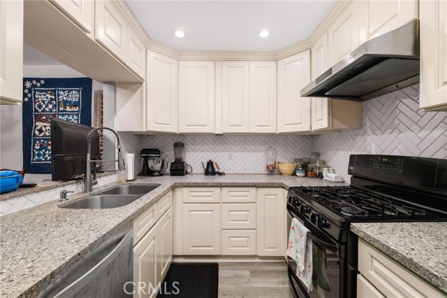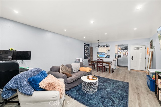 Experience the convenience of this tastefully updated single level condo centrally located in the city of Anahiem. This unit offers 2 generously sized bedrooms, laminate flooring throughout, recessed lighting, and more. The kitchen has been recently updated and is perfect for preparing all of your family meals. The bathrooms feature new vanities, quartz countertops with the hallway bath also featuring bluetooth mirrors and double sinks. The patio is large and private making it perfect for entertaining and allowing you private access to your 2 car garage. If you are looking for the perfect home in a great location with easy access to freeways, shopping, parks, and entertainment this is it!