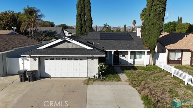 Rare Opportunity! Welcome to this delightful 3-bedroom, 2-bath home offering 1,310 sq. ft. of comfortable living space on a nearly 6,000 sq. ft. lot. Thoughtfully upgraded in 2016, this charming home just needs a fresh coat of paint and a little tender loving care to make it truly shine. The spacious living room features vaulted ceilings and a cozy fireplace, creating an inviting atmosphere for friends and family. The kitchen offers granite countertops, stylish cabinetry, and quality appliances. The primary ensuite includes a large walk-in closet, while the home’s travertine and Pergo flooring, crown molding, and upgraded baseboards add an elegant touch throughout. Additional highlights include a spacious garage with pull-down attic access for added storage. The backyard is designed for relaxation and easy maintenance, featuring artificial turf, vinyl fencing, a spa, and a covered patio—perfect for enjoying the outdoors. Two large storage sheds provide plenty of extra space, one ideal for tools and the other perfect as a small workshop or playroom. Energy efficiency stands out with Tesla solar panels, helping to keep utility costs low. Situated on a quiet cul-de-sac, this affordable and easy-to-maintain home offers a wonderful opportunity for comfortable living.