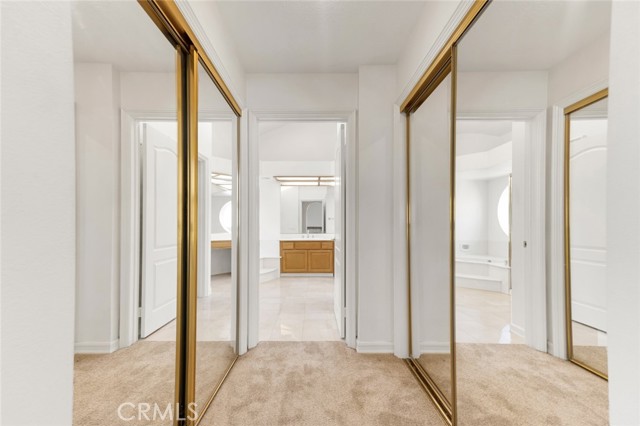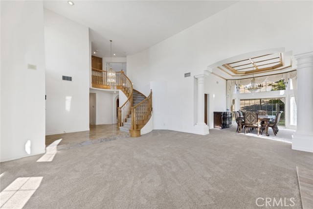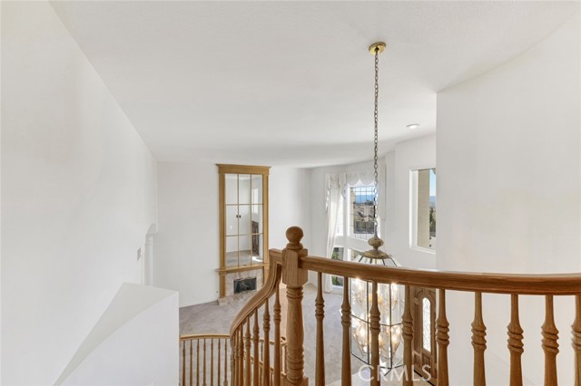 Experience refined living in this elegant 4 bed, 3.5 bath, nearly 4,000 sqft residence in the prestigious 24-hour guard-gated Porter Ranch Estates. Set on desirable corner lot with stately curb appeal, the home offers 3-car garage, brick-accented drive and walkways, and a charming covered front porch framed by classic columns. Inside, fresh paint and brand-new carpet enhance the light-filled interior, where a formal tile entry opens to a dramatic step-down living room with soaring two-story ceilings, an impressive bay window that floods the space with natural light, and a striking fireplace that anchors the room. The open floor plan flows gracefully through flanking columns into the formal dining room with decorative coffered ceiling and double-height windows overlooking the private yard. The spacious kitchen blends style and function with wood cabinetry, stone countertops, a large center island, and built-in appliances including double ovens, plus a sunny breakfast nook with glass sliders leading to the back patio. The adjacent family room creates a relaxing space for fun and entertainment with crown molding, rich wood wainscotting, custom built-ins, and a beautiful stone fireplace. A well-appointed downstairs bedroom with en-suite bath provides ideal guest or in-law accommodations, while the convenient laundry room with utility sink and direct garage access adds practicality. Upstairs, the luxurious primary suite boasts a vaulted ceiling, double-door entry, cozy fireplace, private balcony, dual closets, and a spa-like en-suite bath with skylight, dual vanities, jetted soaking tub, and separate shower. Two additional bedrooms share a full hall bath with dual sinks. A spacious bonus room with vaulted ceiling, fireplace, and impressive windows which exposes a great valley view, offers versatility and can be a playroom, home office, media room, studio space, or even a potential fifth bedroom. Outside, the backyard is designed for entertaining and relaxation, with a covered patio, grassy lawn, brick planters, and firepit. Additional features include dual-zone HVAC, central vacuum system, and access to community amenities including pools, spa, tennis courts, playgrounds, and beautifully maintained greenbelts. Ideally located just minutes from The Vineyards at Porter Ranch, top-rated schools, including Granada Hills Charter School, dining, and freeway access, this exquisite home offers a rare blend of comfort, sophistication, and timeless style. Don’t miss out!