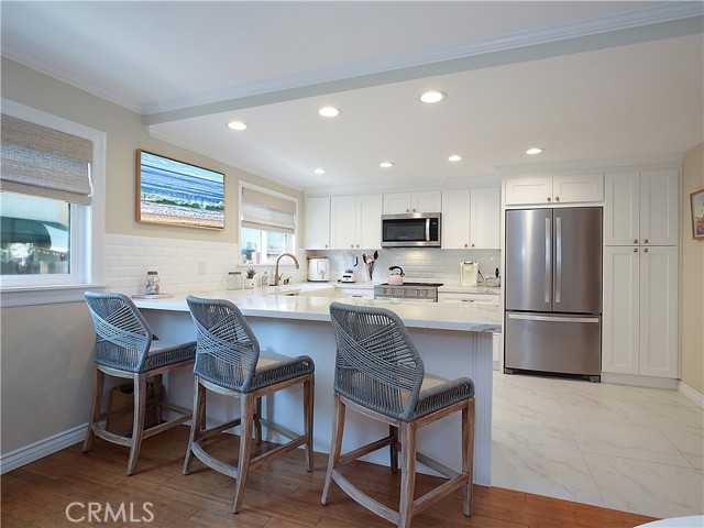 Welcome to Pacifica Villas, an incredible beachside community that captures the essence of coastal living within a serene, resort-style setting. This stunning 3 bedroom, 3 bathroom townhouse offers an ideal blend of comfort, convenience, and modern design, all just steps from the sand, greenbelt, shops, and restaurants that make Hermosa Beach one of Southern California’s most desirable cities. Step inside to discover a bright and inviting two story floor plan designed for both everyday living and entertaining. The beautifully remodeled kitchen serves as the centerpiece of the home, featuring stainless steel appliances, a stone countertop with breakfast bar, subway tile backsplash and built-in banquette seating. The separate dining room features new lighting and an exquisite buffet cabinet that overlooks the inviting living room with high ceilings and a cozy fireplace. The primary suite offers a tranquil retreat with a beautifully updated ensuite bath and generous closet space. Other amenities include hardwood floors, new windows throughout, recently upgraded pipes, 4 zone air-conditioning and so much more. Natural light adorns the entire residence and is punctuated by 3 outdoor living spaces, including a ground floor spacious patio, a private sundeck on 2nd floor, and a balcony off the primary suite overlooking the picture perfect grounds. You'll feel like you are on vacation every day while surrounded by lush greenery and a large sparkling heated pool and spa. This townhouse feels more like a single family residence with no neighbors above or below, and faces into the community rather than the street, providing privacy and treetop views. Don't miss the THREE car garage plus bonus room for extra storage not included in the square footage! With easy access to local parks, the Strand, and top-rated schools, this home is perfectly positioned for those seeking the Hermosa Beach lifestyle with added comfort and style.