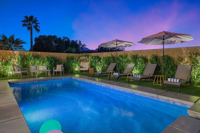 Priced for an immediate sale and being sold turn-key furnished! Welcome home to your new desert paradise at Anastacia Ct! This luxury dream home is fully renovated and features an open floor plan, 4-bedroom, 2.5-bathrooms, modern finishes with stylish designer touches throughout. As one steps through the front door, one will discover light-filled living spaces, a sleek kitchen with quartz countertops and stainless steel appliances. The spa-inspired bathrooms feel like one is at a private resort. Every inch of this space has been renovated and the backyard is an entertainer's dream, with a mini pebble-tec pool and spa, comfortable outdoor furniture, and games. This home is Ideally located across the street from Coachella & Stagecoach festival's VIP parking lot area and can make an incredible rental. Call today to schedule your own private showing.