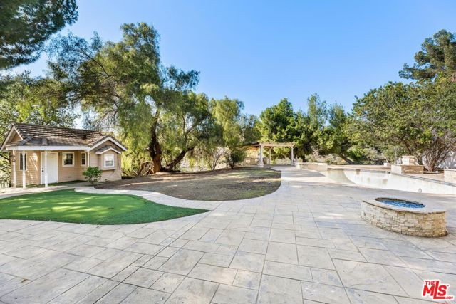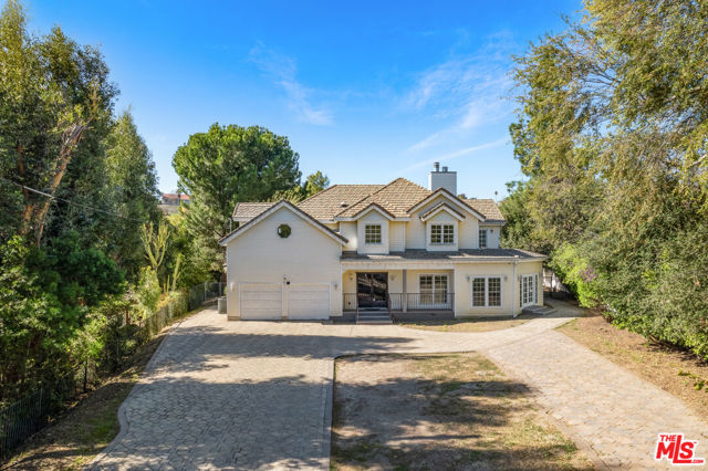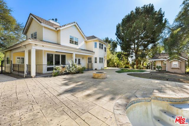 Located in highly sought-after North Granada Hills, this 2006 custom-built residence presents a rare opportunity for renovation whether you're restoring, updating, or renovating it entirely. Featuring 5-beds and 7-baths, this stately home comprises 3,450 SF, plus a studio-style guest house, and is situated on an expansive 26,000+/- SF Lot. A formal entry with soaring ceilings opens to generous living spaces with coffered ceilings, crown molding, custom wrought iron detail, and marble/hardwood floors throughout. Each bedroom features its own remodeled en-suite bathroom. Upstairs, the primary suite features a pitched ceiling, marble fireplace, balcony, and a large en-suite bath with soaking tub, dual vanities and a large walk-in shower. The impressive backyard is perfect for entertaining, featuring a large saltwater pool and spa, custom stone fire pits, gazebo with built-in BBQ, and sweeping views of the canyon. An incredible opportunity with endless potential in one of Granada Hills' most desirable neighborhoods - close to Zelzah Park, Aliso Canyon, and within the top-rated Granada Hills Charter School District. Property being sold as is, where is - Buyer to verify all information.