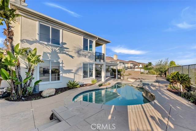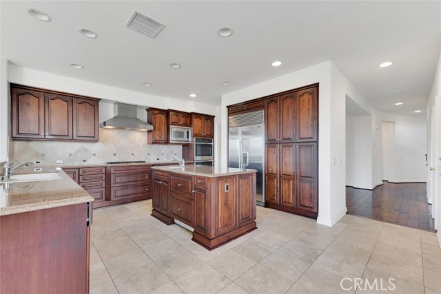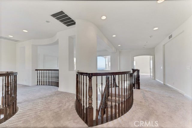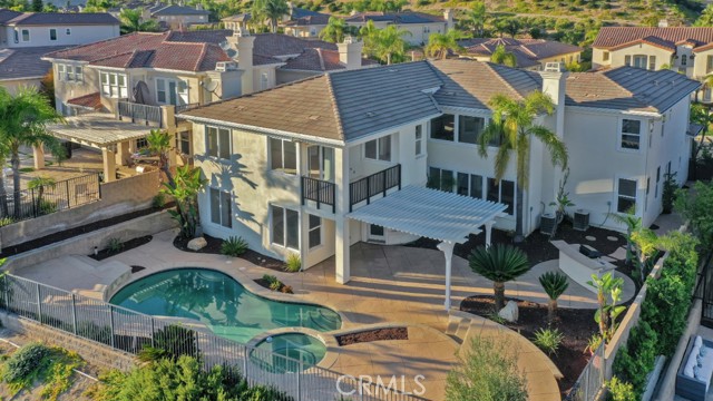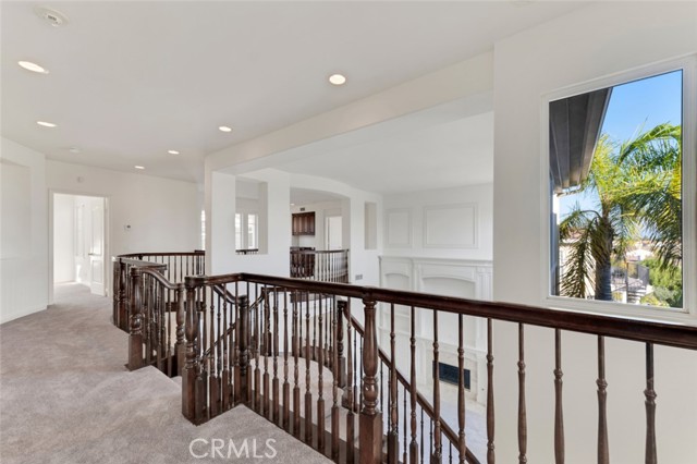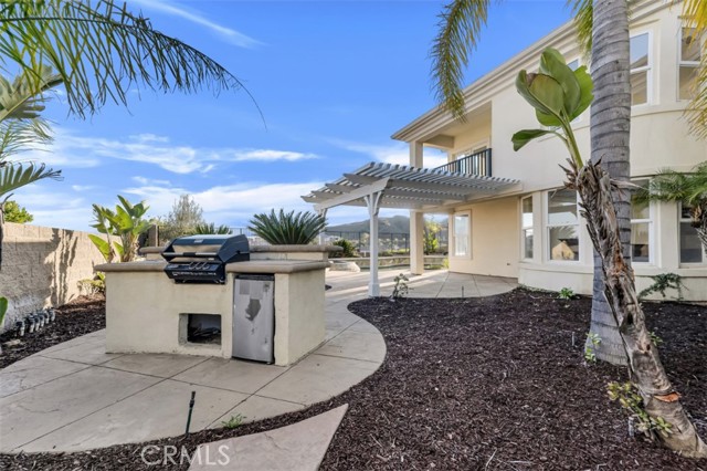 Embrace luxury living in this magnificent 5-bed, 5-bath, nearly 5,000 sqft residence, located in prestigious guard-gated Renaissance community of Porter Ranch. Set on prime elevated lot with breathtaking mountain & valley views, this grand estate combines timeless elegance with contemporary sophistication. The exterior showcases drought-conscious landscaping, stately natural stone accents, wood siding & beautifully colonnaded covered porch. Inside, a formal entryway welcomes you home with fresh interior paint, new carpeting & thoughtful touches throughout, like recessed lighting, high ceilings, dual zone AC & so much more! The formal living room makes a statement with soaring two-story ceilings, marble-surround fireplace, & custom built-ins. The formal dining room exudes refinement with a decorative tray ceiling, rounded bay windows. The gourmet kitchen is a chef’s dream featuring dark wood cabinetry, granite countertops, a central island with auxiliary sink, stainless steel appliances including built-in double ovens, a sunny breakfast nook with a curved bay window, & breakfast bar seating. The adjoining, open family room offers relaxed sophistication with a cozy fireplace & views of the mountains. A private bedroom with en-suite ¾ bath makes a perfect, private, guest suite while a den/office space, provides a quiet workspace & could be easily converted into an additional bedroom. Additional features include a convenient powder bath, dedicated laundry room with utility sink & storage space, & 2 attached garages, with direct access, offering parking for 3 cars. Upstairs, the luxurious primary suite is a private sanctuary with double-door entry, tray ceiling, sitting alcove, French doors to a private balcony with panoramic views, & a spa-inspired bath boasting dual vanities, soaking tub, walk-in shower with dual shower heads, & a massive walk-in closet. 2 additional bedrooms each feature en-suite baths & generous closets, while the upstairs bonus room offers flexibility as a media room, home gym, or study. The backyard is a true retreat, complete with a sparkling pool & spa, pergola-covered patio, & a built-in BBQ/outdoor kitchen designed enjoy the sweeping views. This home embodies comfort, style, & sophistication, with access to community amenities, including tennis courts & manicured grounds, all within minutes of The Vineyards shopping center, fine dining, & top-rated schools. Don’t let this one pass you by!