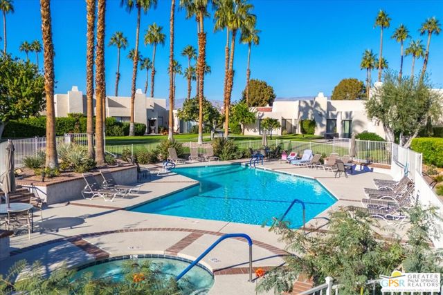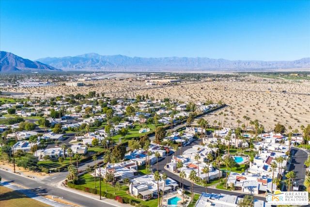 Own a Piece of Serenity in South Palm Springs! Tucked in a peaceful, low-density community, this stylish end unit blends desert charm with modern comfort. Fee-simple ownership means you own the land: a true Palm Springs bonus. Inside, light fills the updated kitchen and baths, accented by a Jonathan Adler Sputnik chandelier that sets a sophisticated tone. Newer HVAC and water heater add everyday confidence. Step outside to your nearly private yard surrounded by mountain views, or wander a few steps to the rarely used (almost private!) pool for a quiet afternoon swim. With both a single-car garage and a covered carport, this home makes resort living easy. Super close to all kinds of shopping and dining! And, the CVLink is just around the corner for walking or biking! Perfect as a full-time residence or weekend retreat: your slice of Palm Springs serenity awaits.