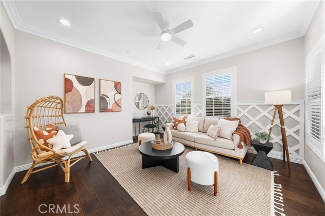 Welcome to 38 Upperbend — a move-in-ready home in the Paloma neighborhood of Portola Springs, Irvine, offering timeless charm, modern upgrades, and exceptional livability. Beyond the private gated entry, a flagstone courtyard and side patio create the perfect first impression—ideal for morning coffee or relaxed evening gatherings. Inside, the open-concept layout connects the living, dining, and kitchen areas in a bright, inviting flow. Exposed wood-beamed ceilings, crown moulding, and a freshly painted white brick fireplace bring warmth and character, while wide-plank mahogany hardwood floors pair beautifully with the natural stone tile found in the kitchen and baths. The chef-inspired kitchen features quartz countertops, high-end stainless steel appliances, and a spacious walk-in pantry. Whether you’re preparing dinner for two or hosting guests, the design perfectly balances style and function. Upstairs, a generous loft offers flexible space for a home office, playroom, or cozy lounge. The primary suite is a true retreat with its own private patio, a walk-in closet, and a spa-style bath complete with dual sinks, a soaking tub, and an upgraded shower. Two secondary bedrooms share a Jack-and-Jill bath, and the upstairs laundry room adds everyday convenience. With only one shared wall at the first level, enjoy the comfort of added privacy. Additional upgrades include fresh interior paint, updated LED recessed lighting, and new designer-selected furnishings. The two-car attached garage, double-pane windows, and upgraded ceiling fans throughout further enhance the home’s comfort and efficiency. Outside, the low-maintenance landscaping and private side yard make entertaining effortless. Located within the award-winning Irvine Unified School District, residents of Portola Springs enjoy resort-style amenities including pools, parks, playgrounds, tennis courts, and scenic hiking trails. Beautifully updated, perfectly located, and thoughtfully designed — 38 Upperbend offers the best of Irvine living in one of its most desirable communities. Schedule a private showing to experience it in person!