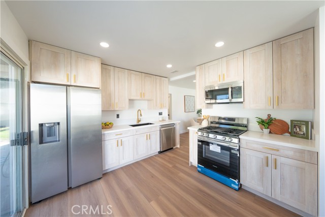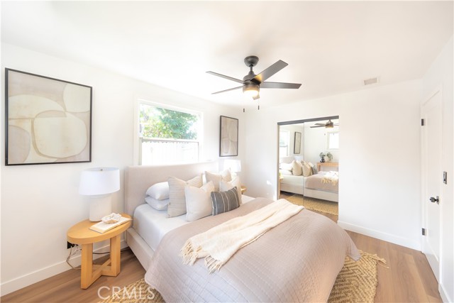 Welcome to 218 Muroc Place — where thoughtful design meets modern efficiency in a beautifully remodeled Fullerton home. Nestled on a quiet cul-de-sac, this 3-bedroom charmer blends warmth and style with a cozy oak-and-white palette, gold accents, and abundant natural light flowing through a custom wood front door. Step inside to discover a fully refreshed interior featuring new laminate flooring, recessed lighting with dimmers, Samsung stainless-steel appliances, quality cabinetry, and the original walk-in pantry that adds charm and functionality. Every detail has been considered — from the brand-new HVAC system, new electrical panel, new roof, and energy-efficient leased solar panels ($197/month) to the fully remodeled bathroom. The oversized 8,000+ sq. ft. lot offers alley access and ADU potential, giving you room to grow or create a private guest space with its own entry. Outdoor living is just as inviting, with a custom redwood front porch, modern aluminum patio cover with adjustable panels, and desert-inspired landscaping with stepping stones, extra parking, and water-saving design. A perfect mix of modern comfort, low maintenance living, and future opportunity — all just minutes from Fullerton’s best shops, schools, and parks.