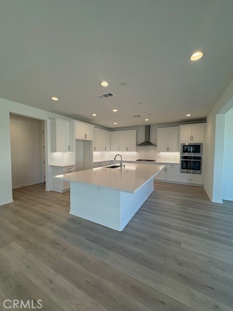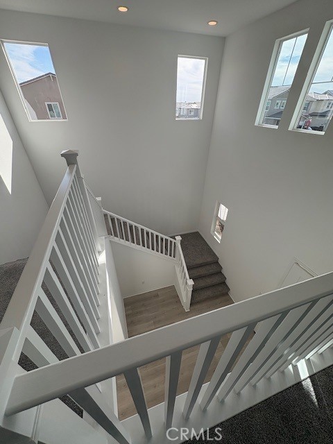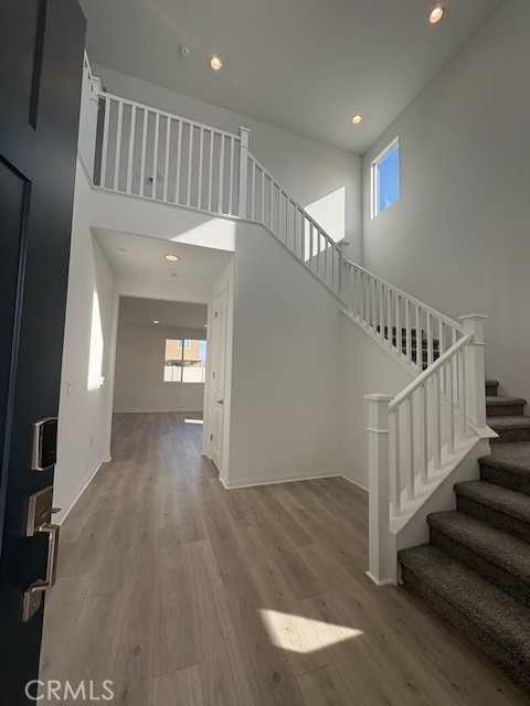 Welcome to the Presley floorplan here in Legacy at the Braverde masterplan in Menifee. It's the final phase and only a few homes remain! As you enter, a 2 story ceiling entry welcomes you. The main floor offers an expansive great room, a beautiful sunroom that lets the light in, a gourmet kitchen w/ white cabinets, quartz counters w/full tile backsplash, under cabinet lighting, walk-in pantry and an immense center island—perfect for entertaining and a cook's dream come true! The whole house has tall 8-foot doors, tons of recessed lighting and ceiling fan prewires in great room, loft and all bedrooms. Flooring includes wood laminate on the main level, 12 x 24 tile flooring in bathrooms & laundry room and upgraded carpet in hallways, stairs and all bedrooms. A convenient first floor bedroom and full bathroom w/walk in shower and a spacious 2-car + storage garage completes the first level of the home. This home also features an open stair railing leading up to the second level where you'll find a large loft and three inviting bedrooms, each with their own walk in closets and a luxurious owner's suite complete with a separate shower and soaking tub. This home includes owned Solar and is turnkey! Visit today!