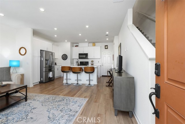 Welcome to Foothill Grove, a beautiful gated community where comfort meets convenience. This stylish 3-bedroom, 2-bath home blends modern touches with thoughtful details throughout. The bright and open floor plan invites you in with plenty of natural light, flowing seamlessly between the family room and the kitchen—ideal for both relaxing nights in and entertaining. The kitchen is the heart of the home, featuring trendy white cabinetry and solid-surface countertops that add a modern touch. A spacious eat-up breakfast bar provides the perfect spot for casual dining or morning coffee. The open layout connects effortlessly to the family and dining areas, creating a bright, welcoming flow ideal for entertaining. Every detail blends style and function for today’s lifestyle. Upstairs, you’ll find all three spacious bedrooms, each with custom window shutters that add privacy and charm. The primary suite offers a peaceful retreat with plenty of closet space and a private bath with dual sinks, soaking tub and separate shower. A large upstairs laundry room makes laundry so convenient. No more dragging laundry up and down stairs! Downstairs, the living area features an automated window covering in the family room, bringing ease and sophistication to everyday living. The main floor also includes a beautifully appointed guest 1/2 bathroom, adding both function and style. Step outside to enjoy a low-maintenance patio—perfect for morning coffee or weekend barbecues. Enjoy direct access from the attached two-car garage, making everyday living simple and efficient. in Foothill Grove means you’ll also enjoy resort-style amenities including a sparkling pool, spa, playground, and secure gated entry. Centrally located near schools, shopping, restaurants, and commuter routes, this home offers the perfect blend of convenience and lifestyle. Whether you’re a first-time buyer, moving up, or downsizing, this Foothill Grove gem checks every box.
