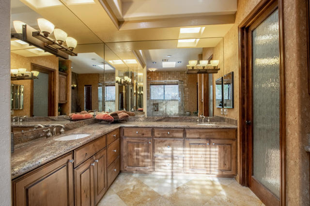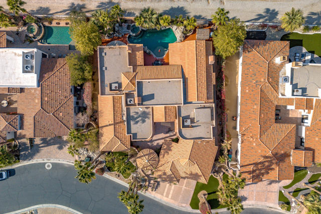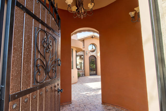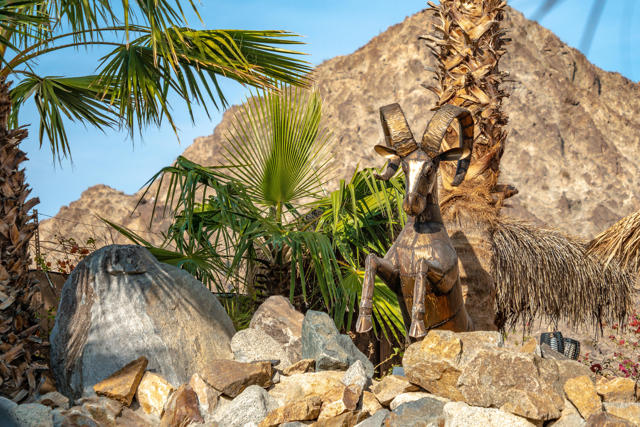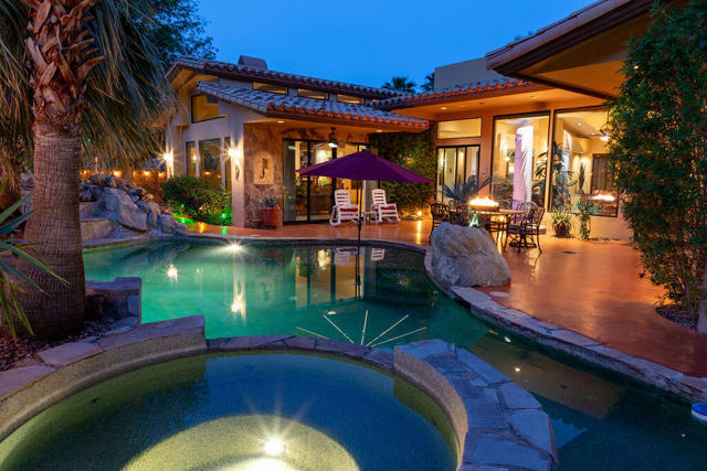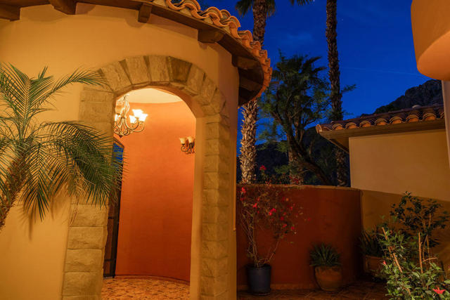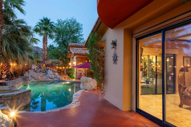Mountainside Seclusion! With over 4,286 sq. ft. of living space including four bedrooms and three and a half bathrooms. This home features a spacious and inviting entry way that leads into a layout with vaulted ceilings allowing for abundant natural light throughout the interior. The primary bedroom showcases a serene ambiance with scenic mountain views and a spacious private retreat with fireplace. The kitchen boasts ample cabinetry and granite countertops, complementing the overall thoughtful design. Gourment kitchen with six burner stove and grill, a pot filler and mirrored backsplash. The homes lush landscaping creates a tropical oasis, complete with an outdoor patio and outdoor bar area with mood lighting, ideal for entertaining or relaxation. The gated community, provides a low HOA. Enjoy seamless indoor / outdoor living for balance in comfort, style and natural grounding connection. Close to Old Town La Quinta, La Quinta Resort and so much more!