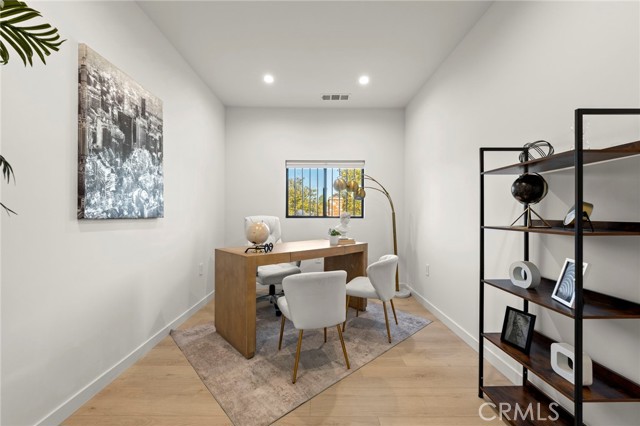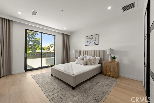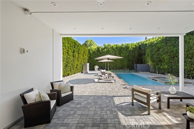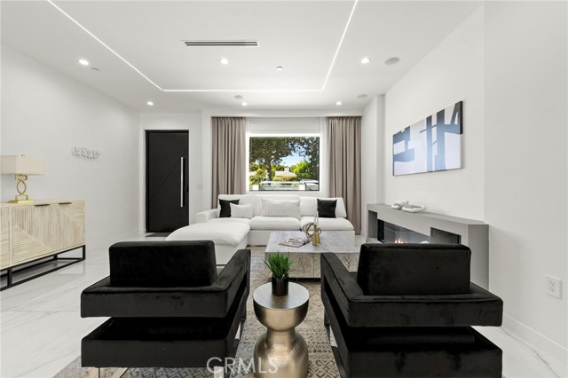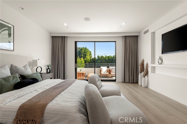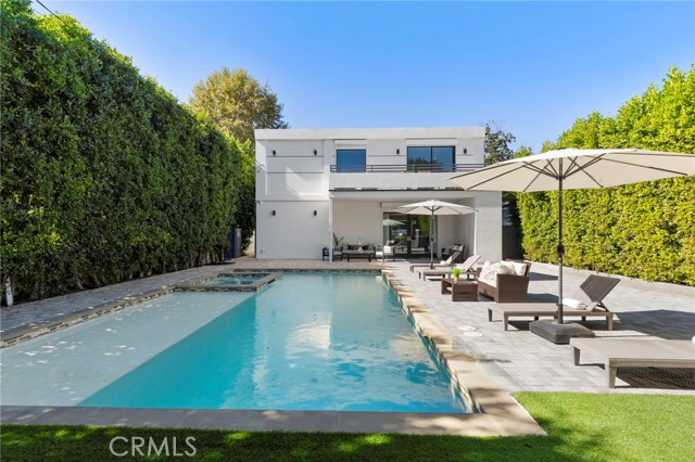 2024 Modern Architectural with Pool, Spa, Designer Closet, Paid Solar & Smart-Home Luxury in Carpenter School District. This 2024 modern architectural residence defines sophistication, innovation, and comfort in one of Studio City’s most desirable neighborhoods. Located within the highly rated Carpenter Community Charter School District, the home offers nearly 2,900 square feet of contemporary living space behind sleek automated gates, combining privacy, sustainability, and elegance with seamless indoor-outdoor flow. The open-concept main level is anchored by a dramatic living area featuring a linear fireplace and floating ceiling that enhance both scale and comfort. The dining area transitions effortlessly into the chef’s kitchen, showcasing a waterfall-edge quartz island, high-gloss European cabinetry, and premium built-in appliances. Every room is designed with modern precision, abundant natural light, and a harmonious sense of balance. Upstairs, the primary suite serves as a private sanctuary with a large terrace and a spa-inspired bathroom featuring a freestanding soaking tub, frameless glass shower, floating double vanity, and LED-lit mirrors. The custom walk-in closet rivals a high-end boutique, with glass-enclosed shelving, a central island, soft-close drawers, and integrated lighting. A secondary suite with its own private balcony and designer finishes completes the upper level. Sliding glass doors open to a tranquil backyard oasis surrounded by tall ficus hedges for complete privacy. The outdoor space features a fully automated pool and spa, multiple lounge areas, and a covered dining patio designed for effortless entertaining and relaxation. This home is powered by paid-off solar panels, offering energy efficiency and long-term savings. A fully integrated smart-home system allows control of lighting, climate, security, and pool settings from your phone. Additional features include wide-plank engineered flooring, skylights, designer bathrooms with matte black fixtures, a two-car garage with frosted glass door, gated driveway, and lush privacy landscaping. Just moments from Ventura Boulevard’s dining, boutiques, and entertainment, this residence embodies the pinnacle of modern California living—where architecture, technology, and sustainability meet in perfect harmony.