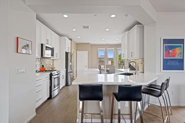 Amazing curb appeal! This house shows better than a Model! Located inside the gates of Trilogy at The Polo Club, this highly upgraded Monaco plan is designed to maximize indoor/outdoor living with multiple outdoor entertaining areas. The home is situated on an oversized home site, and offers excellent curb appeal with a four panel glass garage door and an inviting front courtyard with artistic teak wood wall. The kitchen opens to the large great room & boasts quartz countertops, seated bar, counter island, breakfast nook, and upgraded stainless steel appliance. Wood tile extends throughout the common areas & primary bedroom. There is a large office/den area that features a 15' rolling glass door that opens to the professionally designed rear yard & covered patio; featuring pavers and a large fire pit. The large master suite features a dual sink vanity & walk-in closet. Additional options include upgraded fixtures & doors, designer ceiling fans, & custom window coverings. This home also includes a solar system that offsets the majority of your electric bill. This home offers casual elegance and is only a short distance to the Clubhouse and large greenbelt. A Polo Club membership is available with $1,875 transfer fee. Membership includes access to the Polo Club, fitness center, pickleball & tennis courts, resort pool, lap pool, artisan studio, card room, banquet facilities, golf simulator, billiards, and so much more.