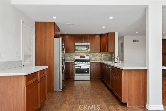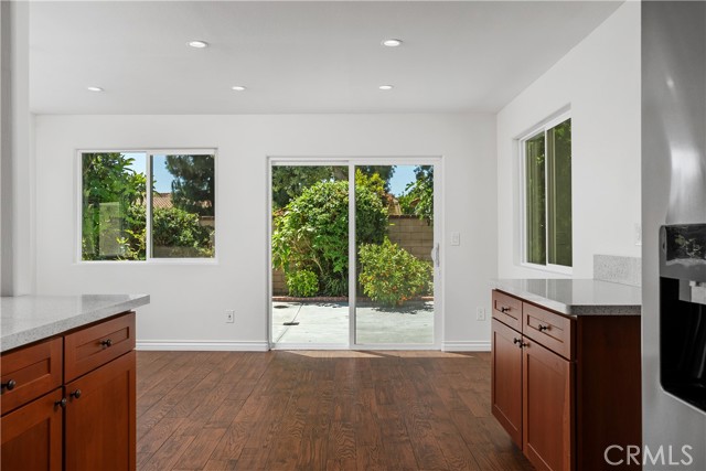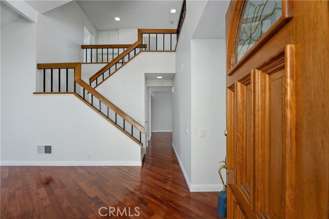 Step into this beautifully upgraded and lovingly maintained single-family home, perfectly nestled in the highly sought-after neighborhood of Park Paseo in Northwood. From the moment you enter, you’ll be greeted by soaring vaulted ceilings and an abundance of natural light that fills the open-concept living spaces, creating a truly warm and welcoming atmosphere.This four-bedroom, two-and-a-half-bath gem offers approximately 2,350 square feet of stylish and comfortable living. The home features elegant vaulted ceilings, a beautifully remodeled kitchen and baths, brand-new windows, and fresh paint inside and out—ready for you to move right in. The spacious living room with its gorgeous hardwood floors flows effortlessly into the formal dining area, which opens to a private, beautifully manicured backyard—perfect for relaxing or entertaining. The heart of the home is the stunning remodeled kitchen, showcasing sleek stainless-steel appliances, modern cabinetry, and elegant countertops. Whether you’re preparing a family meal or hosting friends, this gourmet kitchen provides ample space and style for every occasion. Unwind in the cozy family room by the fireplace, a perfect gathering spot for movie nights or quiet evenings at home. Upstairs, you’ll find high ceilings and a bright, airy primary suite featuring a luxurious bathroom, spacious walk-in closet, dual sinks, and a step-in shower. Additional bedrooms are generously sized, complete with plush carpeting and a beautifully updated guest bathroom with quartz countertops. Step outside to your private backyard oasis, surrounded by lush fruit trees and plenty of room for outdoor dining, gardening, or play.Enjoy resort-style amenities including two pools, a spa, tennis courts, greenbelts, BBQ areas, and a clubhouse. With low HOA dues, low taxes, no Mello Roos, and convenient access to Hicks Canyon Trail, parks, shopping, and dining, this home truly has it all. Come experience the warmth, beauty, and community that make Park Paseo one of Irvine’s most cherished neighborhoods—welcome home!