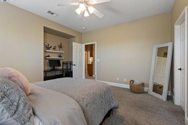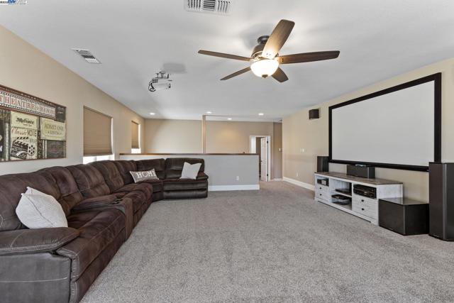 TONS of updates and a great value! Pride of ownership shines throughout this well-maintained home tucked behind the gates in The Lakes. With generous square footage, this home offers 4 bedrooms (2 suites) plus a den, plus a huge loft. This home is ideal for multi-generational living or anyone needing plenty of space. Downstairs features stylish plank style laminate flooring, plush carpet adds comfort upstairs. The spacious kitchen boasts granite counters, stainless steel appliances, island, large walk-in pantry, and abundant cabinet space. Neutral two-tone paint and upgraded baseboards give the home an updated, cohesive look. Upstairs, the junior suite can provide a private retreat for guests. The oversized loft is a standout feature and is complete with a home theatre experience, a wet bar, and a beverage fridge - perfect for entertaining or relaxing. The expansive primary suite is filled with natural light and includes an en-suite bath with a jetted tub, stall shower, dual sinks, a vanity, and two walk-in closets. Outside, enjoy a beautifully landscaped backyard - ideal for hosting or unwinding. The 3-car garage includes a professionally finished flex space in the tandem area ideal for a hobby room or more storage. This home has been thoughtfully updated for comfort and style.