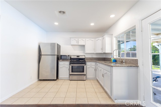 Welcome to this beautifully refreshed single-story Riverside home featuring 3 bedrooms and 2 bathrooms on a spacious 7,405 sq. ft. lot with a sparkling pool! Step inside to discover a bright, inviting interior illuminated by new recessed LED lighting that highlights the home’s freshly painted “Whipped Cream” white walls—creating a modern and elegant feel throughout. The kitchen comes fully equipped with all included appliances: refrigerator, gas range, and microwave—perfect for moving right in. The bathrooms have been tastefully remodeled, showcasing brand-new vanities, updated plumbing and electrical fixtures, and stylish tile finishes. The primary suite features its own private bathroom with a separate toilet area, offering extra comfort and convenience. Outside, enjoy your own backyard retreat with a recently refinished, shiny-blue pool that’s ready for summer gatherings. The spacious yard offers plenty of room for entertaining, barbecues, or relaxing weekends by the pool. An additional fenced side area provides a secure space for pets or a private garden setup. This home also features a brand-new roof, central heating and cooling, and fresh exterior and interior paint, ensuring peace of mind for years to come. Located near shopping, dining, and schools within the Alvord Unified School District, this move-in-ready home perfectly balances comfort, style, and convenience.