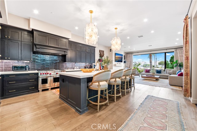Experience coastal sophistication at its finest in this showstopping new-construction home in Seal Beach’s premier Ocean Place community. Designed for discerning tastes, this 3-bedroom, 4-bath residence spans approximately 3,300 square feet of light-filled luxury, blending timeless design with modern functionality. Step inside to soaring ceilings, floor-to-ceiling windows, wide-plank hardwood floors, and custom Farrow & Ball-painted interiors that radiate warmth and refined elegance. The chef’s kitchen is a true centerpiece, featuring a massive quartz island with striking glass pendants, custom cabinetry, and professional-grade appliances including a Sub-Zero paneled refrigerator and Wolf 6-burner range with custom hood. Flow seamlessly into expansive living and dining areas where 14-foot glass doors open for indoor-outdoor living. Thoughtful details—brushed gold fixtures, designer lighting, and European linen drapery—add sophistication throughout. Upstairs, the primary suite offers a serene retreat with a private terrace, generous custom walk-in closet, and a spa-inspired bath with freestanding soaking tub, dual vanities, and a separate rainfall shower. Two additional bedrooms (one ensuite with walk-in closet) ensure comfort and privacy, along with another elegant bath and full laundry room. A versatile bonus room with custom cabinetry completes the second floor—perfect for movie nights, an office, or playroom. Designed for seamless indoor-outdoor living, NanaWall glass doors open to a landscaped front terrace, while the rooftop deck delivers 360° panoramic views—from the Pacific and Catalina to the Long Beach marina and surrounding mountains. With a gas line for BBQs, this space is an entertainer’s dream for sunset dinners or holiday fireworks. Additional features include a private outdoor shower, cinema-level AV system with Sonos, SheaConnect Smart Home features (Ring Elite, Kevo lock, Eero Wi-Fi, Nest thermostat, security), 2-car garage with EV charging, and a tankless water heater. Ideally located just steps from the sand, Main Street cafes, Alamitos Bay Marina, and 2nd & PCH, this home perfectly balances luxury and laid-back beach living within the award-winning Los Alamitos School District. With hundreds of thousands in designer upgrades, 15 Marina Way is a rare coastal masterpiece.