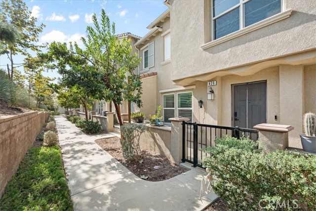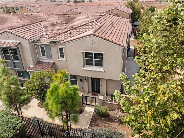 Check out this end-unit with one of the largest side yards! This semi-attached townhouse is located in the gated community of El Paseo, where you can enjoy resort-style amenities including a pool, spa, recreation center, and tot lot. This two-story home offers a spacious living room, dining area, large kitchen, and a convenient half bath on the main floor. Upstairs features a loft with a balcony, a primary bedroom with an en suite bathroom including dual vanities and a walk-in closet, two additional bedrooms, a hall bath, and an upstairs laundry room. Additional highlights include a two-car garage with direct access, luxury vinyl flooring, recessed lighting, and energy-efficient appliances. the property is ADA compliant, Ideally located near major employment centers, Ontario International Airport, and the Victoria Gardens Outdoor Mall.