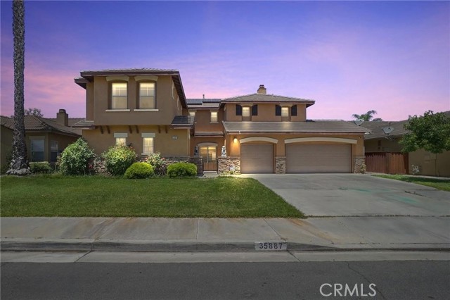 PRICED TO SELL!!! Come see this stunning and meticulously maintained two story home located in a quiet cul de sac street by Dutch Village next to French Valley area, right in the heart of Winchester. It offers 4 spacious bedrooms, 3 full bathrooms, a big loft and a pool. This home is designed with both functionality and elegance in mind. There is a private entrance bedroom ideal for casita, next gen conversion with full bathroom located next to the entrance courtyard by the main level. It's perfect for guests, in laws, a home office setup or extra rental income. Step inside to find an open concept living room layout filled with natural light, upgraded luxury flooring, custom window treatments, ceiling fan and recessed lighting throughout the main living areas. The gourmet kitchen is a chef’s dream, showcasing granite countertops, stainless steel appliances, shaker style cabinetry, walk in pantry for added storage, tile backsplash and chef vent hood over the kitchen island with its own breakfast bar facing the family room. Great to enjoy a nice meal with family and entertain guests. Once you step upstairs, you can enjoy a versatile loft space perfect for a media room, play area, or home gym. The expansive primary suite boasts a spa inspired ensuite bathroom with dual vanities, quartz countertops, a soaking tub, separate glass enclosed shower, and a generous walk in closet. Secondary bedrooms are generously sized and share a beautifully finished bathroom with modern tile accents and upgraded fixtures. Also located upstairs is the laundry room with plenty cabinets for extra storage and deep utility sink. The backyard is a private retreat on this big lot. Fully fenced and featuring concrete patio space, gated pool and spa, low maintenance landscaping with plenty of room to customize the perfect outdoor living area. Additional highlights include energy-efficient dual-pane windows, tankless water heater, smart home features, 36 solar panels and attached 3 car garage. Conveniently located near top rated schools and walking distance to Susan La Vorgna Elementary School, sports park, shopping centers and freeway. It won't last!!!