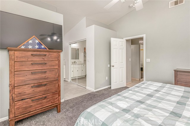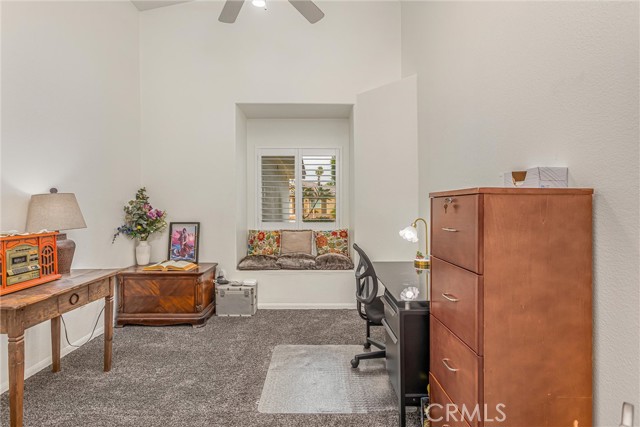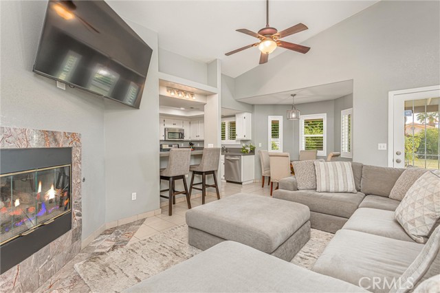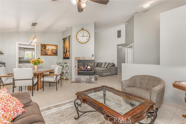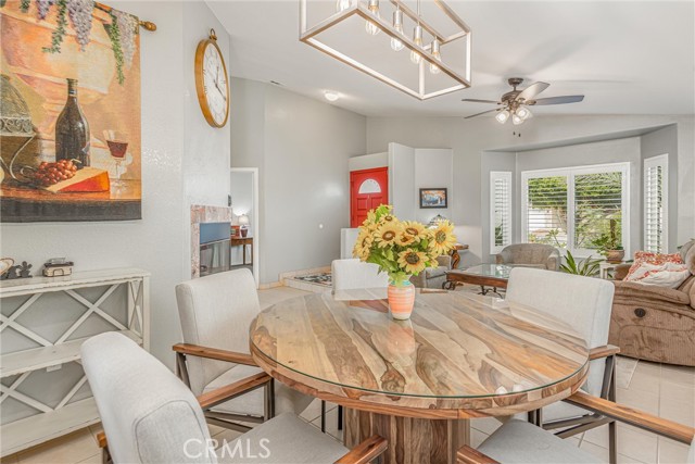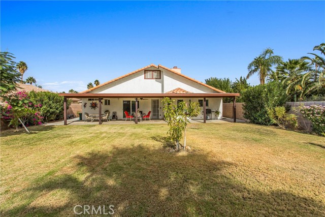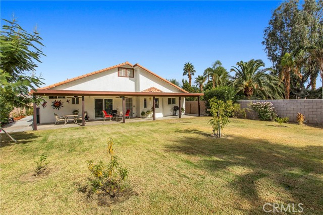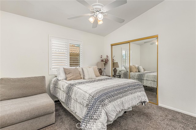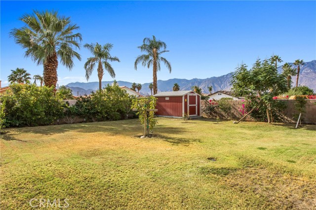 Single-story home in Cathedral City featuring 3 bedrooms and 2 bathrooms with tile flooring throughout the main living areas and carpet in each bedroom. Plantation shutters on every window add a clean, finished look and help control light and temperature. The open-concept kitchen includes granite countertops, white painted cabinets, a breakfast bar and a view into the family room—perfect for everyday living. Upon entry you’ll find a formal sitting area and dining area that flow into the main space. The primary suite offers a walk-in closet, walk-in shower, and slider door that opens to the patio. Both bathrooms feature walk-in showers with updated tile finishes. Indoor laundry room adds convenience. Outside you’ll find a covered concrete patio, block wall around the entire yard for privacy, and a storage shed for extra space. The backyard is a mini orchard with mango, pomegranate, orange, and guava trees to enjoy season after season. Located close to Cathedral Canyon Country Club, Panorama Park, local grocery stores, and easy access to Hwy 111. Includes 3D tour, video walkthrough, and interactive floor plan for virtual viewing. This well-maintained property offers comfortable single-level living and proximity to shopping, dining, and desert resorts.