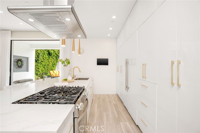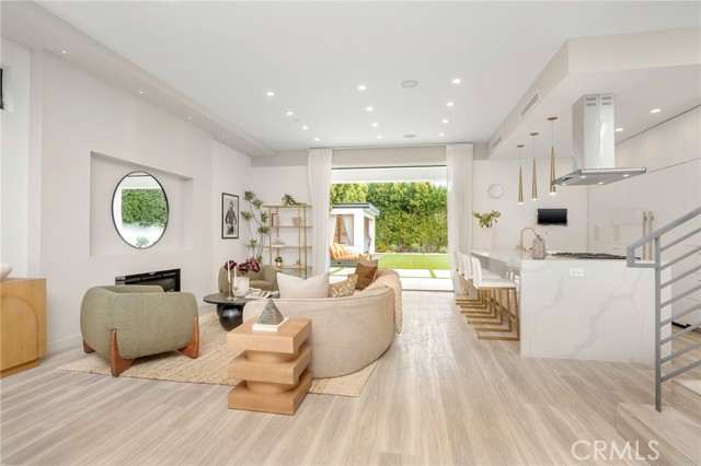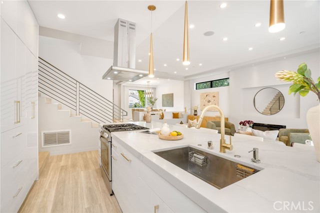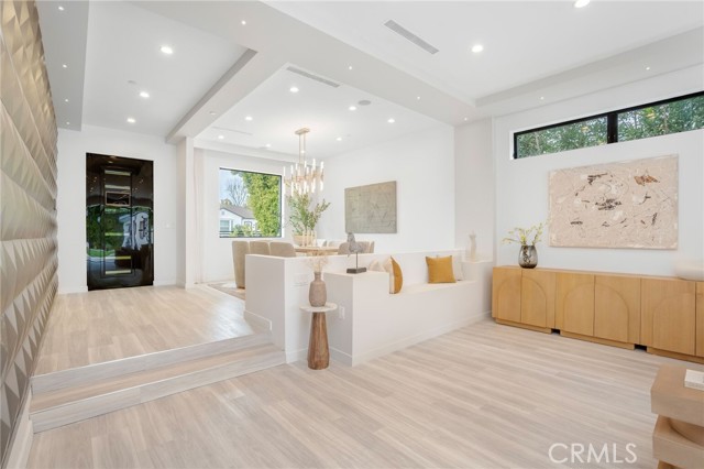South of the Boulevard and just minutes from Encino Commons, this turnkey custom home blends modern comfort, high design, and everyday security seamlessly. Built in 2019 with designer craftsmanship, it has been meticulously maintained ever since. A gated motor court accommodates up to four cars before reaching the attached garage. 10 foot ceilings open the space up instantly upon entry, where a formal dining room rests alongside the entering corridor leading into the main living area. The sunken family room is bright & airy, and connects to the plush kitchen and also leads into the yard through giant fleetwood doors. Resort style backyard starts with a covered patio with built in speakers, features a cabana, large grass pad, and heated pool with tub. Super private in the backyard and the perfect place to gather, party, relax, or use as a playground for kids. Inside the home are 4 bedrooms, all equipped with en suite bathrooms. One bedroom down, three bedrooms up. Each of the three upstairs bedrooms enjoy a private balcony, with the master’s spanning nearly the entire width of the home overlooking the yard. The master also has a generous walk-in closet with skylights and custom built in organizers/dressers. Laundry room upstairs as well, right outside of a large landing pad in between the rooms, which is also another valuable space for additional furniture, shelves, study area, etc. The garage can be used for cars, a gym, extra room, or an office- it includes A/C and heat and tile floors. Home also features 3 A/C and heating zones, solar, security cameras, and a roll down security shutter. Easy access to Encino's best amenities including top-rated schools, Equinox, Trader Joe's, Encino Commons, Balboa Park, Los Encinos State Historic Park, El Caballero Country Club and the 101 freeway.