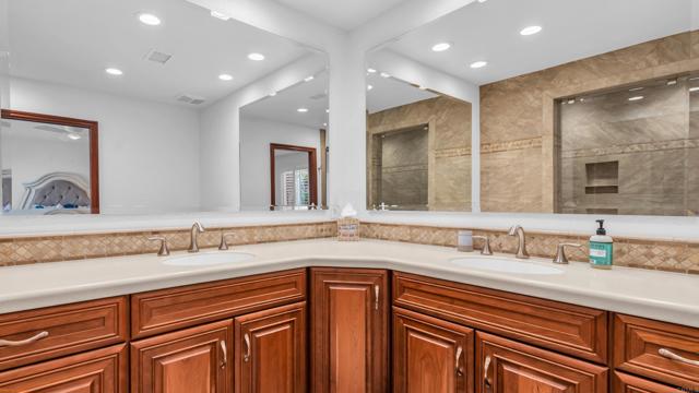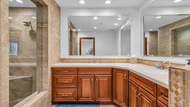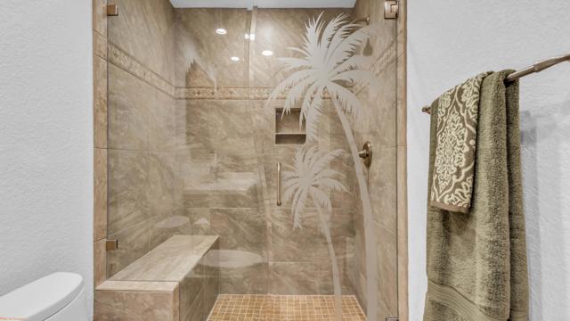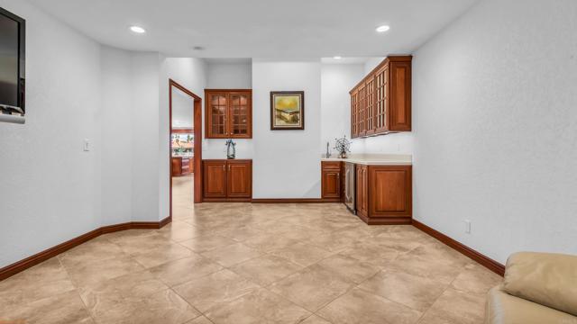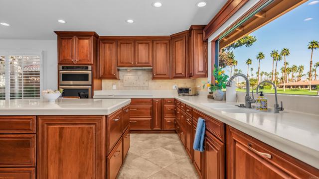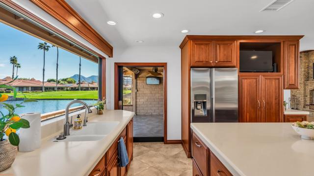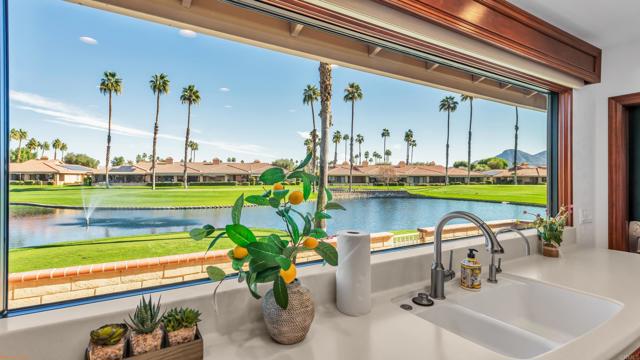 Stunning lakefront, golf-course property in the premier location of Chaparral Country Club! This beautifully renovated 3-Primary Suites, 3-bath condo offers panoramic views of the lake, tee, and green on the 9th hole. Thoughtfully redesigned from top to bottom within the last six years, no detail or expense was spared! Every finish is timeless, high-end, and impeccably curated. Enjoy 8-foot raised ceilings, ceramic tile flooring, a paver driveway and walkway, and an expansive tiled patio perfect for taking in the surrounding beauty. The gourmet kitchen features a dramatic 10-foot picture window, Corian countertops, a large island with custom roll-out storage, KitchenAid appliances, a state-of-the-art Samsung refrigerator, and a custom glass pocket door leading to the patio. The converted atrium offers additional living and entertainment space with a wine fridge, ice maker, glass-door cabinetry, and interior lighting. All bathrooms are luxuriously redesigned with spacious walk-in showers and premium fixtures. Additional upgrades include energy-efficient Pella windows with high-end shutters, remote-controlled roller shades on the living room sliders, a tankless water heater, NEW HVAC and a fully tiled 3-car garage PLUS a dedicated golf cart garage. Chaparral Country Club amenities include an 18-hole Ted Robinson Sr.–designed golf course, 21 pools and spas, tennis and pickle-ball courts, a fitness center, and a clubhouse with dining and lounge options. This is a rare opportunity to own a fully renovated, lakefront golf-course home in one of the most coveted locations in the community. A must-see!