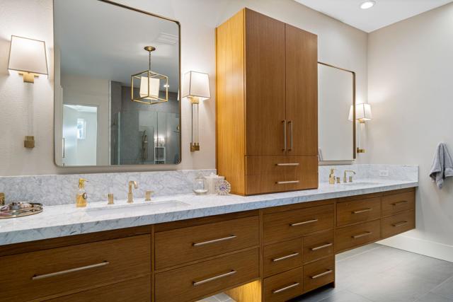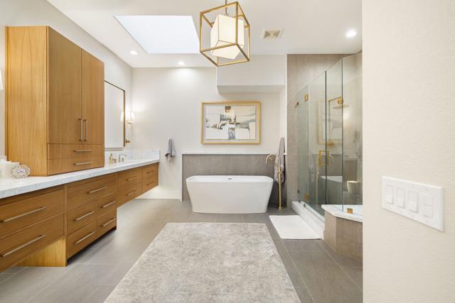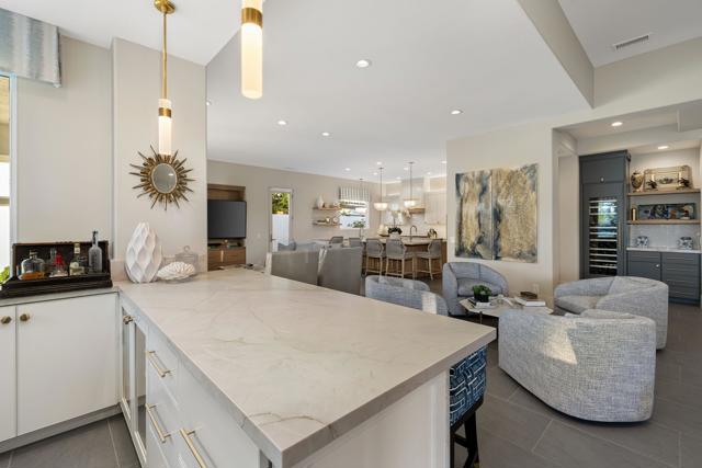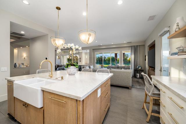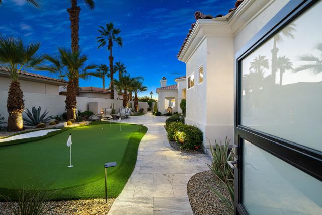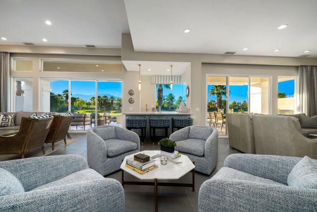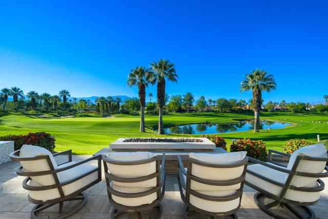 Where Views Meet Luxury at Indian Ridge Country Club! Step into refined desert living with this highly upgraded Ocotillo 2G model at Indian Ridge CC in Palm Desert CA- a home that truly impresses! With 4 bedrooms and 4.5 bathrooms (including the attached 1 bedroom/1 bath Casita), this redesigned 3,576 sq.ft. home offers modern design, luxury updates, and sweeping golf, lake, and mountain views. GOLF Membership is Available to the Buyer with NO Wait, and the home is being offered Furnished per Inventory. This premium pie-shaped 11,761 sq.ft. lot has been transformed with exceptional outdoor spaces for relaxing and entertaining. The front courtyard includes a lighted putting green and new fireplace with seating. Elevated above Arroyo #16 and #17 beyond, the back fairway patio has been extended with a private pool and spa, fire feature with seating, built-in BBQ area, awning and multiple areas for dining or simply enjoying the breathtaking views. Enjoy seamless indoor/ outdoor living with a spacious open floor plan. The Great Room has been modified with removed pony walls for a light, airy feel. The Living Room features a fireplace, electric blinds with wireless remotes, and direct access to the patio. Wet bar with counter seating and a separate lounge area makes entertaining effortless, complemented by the recent enhancement of a secondary bar area with a wine cellar. Family Room flows directly into the remodeled kitchen, complete with high-end appliances, sleek quartzite countertops, a large center island with seating, and a pantry reimagined for easy access to the back hallway . Italian ceramic tile throughout the home, with carpeting in the bedrooms. The Primary Suite offers a luxurious retreat with two closets (including a large walk-in) and a remodeled spa-like bathroom with Carrara marble counters, new contemporary cabinetry, dual sinks, a statement tub, and separate shower. Two ensuite guest rooms in the main house ensure privacy and comfort, while the detached Casita provides an additional 1 bedroom ensuite option just off the front courtyard. This home combines modern luxury, thoughtful upgrades, and a relaxed desert lifestyle, making it a true standout! Indian Ridge CC features two Arnold Palmer Signature golf courses, tennis/ pickleball facilities, a fitness center, a full-service spa, two restaurants, 38 community pools/spas & an active social calendar. Come Join the Fun!