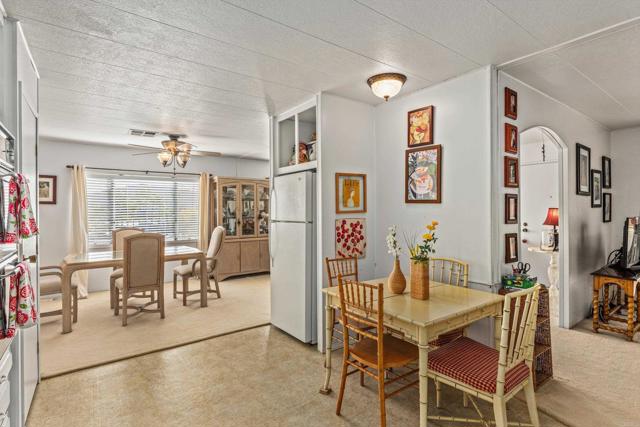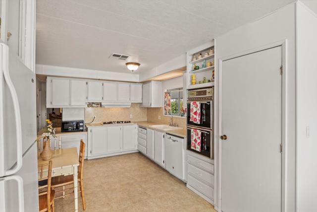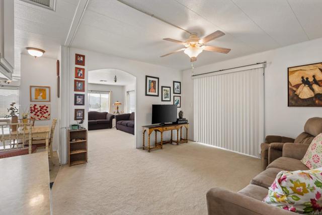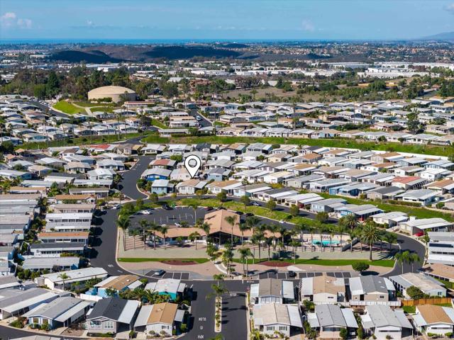 2 bed / 2 bath located on an elevated VIEW lot in a 55+ rent controlled park. No neighbors across from you means no obstructions in your beautiful panoramic views of the hills and valleys to the East, the snow caps to the North East, and the morning sunrise! Interior is very light and bright. The spacious Kitchen offers plenty of space for a breakfast nook. 3 ceiling fans plus central A/C. The Primary Bathroom offers 2 sinks and a separate tub and shower. The spacious Guest Bedroom also has it's on ensuite Bathroom. All appliances convey and many furniture pieces are available to be included as well. An enclosed porch offers extra living space or storage. There is a private patio behind the home and a large storage shed. Palomar Estates East is a very active and social 5* community - check out the photos to see some of the amenities this community has to offer! Convenient to shopping, restaurants, Lake San Marcos, two golf courses at Lake San Marcos, another golf course nearby off Twin Oaks, entertainment, lots of parks and trails, the San Marcos Senior Center, and just a short 8 mile drive to Carlsbad beaches! Monthly space rent is only $658.32 and is under rent control!