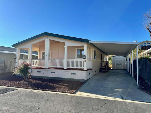 Spend your time sitting on the front porch surrounded by the lake and mountains of lake county. This three bed, two bath, living and dining room, well apointed kitchen and laundry home is quiet and comfortable. there is a convient storage shed off the carport. This home is light and bright and airy. Access to club pool, pier, dock and boat launch. Enjoy everything that a senior community offers. Park approval and application required.