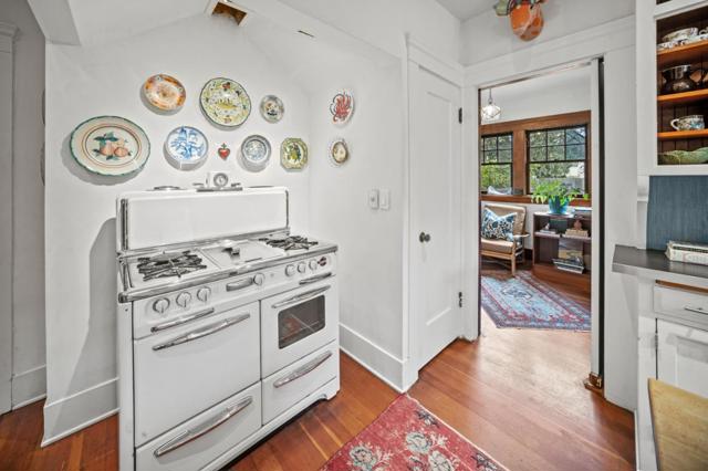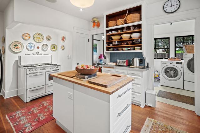 This 1940's Spanish Revival retreat offers the epitome of refined comfort. The classic stucco exterior has iconic terracotta tile details and is complemented by period casement windows. Inside you'll find the warmth and sophistication of true coastal California tradition. Hardwood flooring throughout and exquisite built in cabinetry showcase the home's fine historic craftsmanship, while shelved niches in its plasterwork provide lovely frames for your art collection. The living room, with the original working fireplace, is joined to the dining and reading rooms by french doors inset with beveled glass. The renovated kitchen was designed to serve modern chefs, while preserving country appeal with traditional cabinetry and a classic vintage Wedgewood gas range. All rooms have high coved ceilings, including the 3 bedrooms, while the bathrooms have beautifully maintained original wall tile. Two entrances to the enclosed garden enhance indoor outdoor flow. There's plenty of room for gatherings here with a standalone studio for private focus and ADU potential. Above this you'll find a fenced pasture that's perfect for your animals. Great location, just minutes to 101 for easy access to the Monterey Peninsula and Silicon Valley.