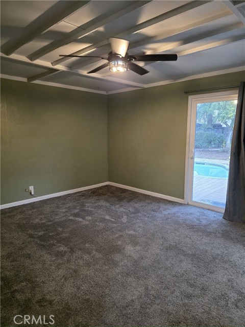 This treasure is located in a court in the very desirable North Merced, Wainwright Bear Creek Neighborhood. A well cared for original. This home features 3 bedrooms and 2 bathrooms, new paint and newer carpet, a formal dining/living room, a separate family room with a beautiful feature brick fireplace framed by bookcases, and a bonus room with open beamed ceiling and gorgeous plantation shutters. Kitchen has spacious cabinetry, Corian counters and an illuminating skylight. Great-sized bedrooms with spacious closets. Rear yard is big and beautiful, with numerous trees - ready for you to create your own paradise. It has 27 solar panels that will be paid off by COE. It has a relaxing, built-in mini-pool/spa, surrounded by a durable Trex deck. Dual pane windows and ceiling fans throughout the home.