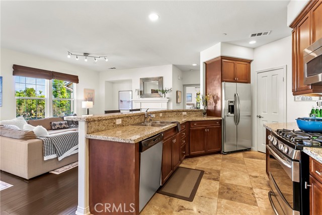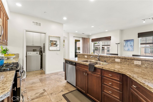 Welcome to 1427 Montgomery, a highly sought-after upper unit that functions as a single story in the vibrant Meriwether community within Columbus Square in one of Tustin's prime spots! Flooded with natural light, this pristine 1,321 square foot 2 bedroom, 2 bath home features vaulted ceilings, a cozy family-room fireplace, recessed lighting, ceiling fans and beautiful laminate wood flooring—along with fresh interior paint and brand-new carpet in the bedrooms for a clean, move-in-ready feel. Enjoy an open, airy floor plan centered around the elegant gourmet kitchen, complete with stainless steel appliances, granite countertops, breakfast bar seating, ample storage and a spacious walk-in pantry. The adjoining family room flows effortlessly to a large private balcony—perfect for relaxing or entertaining. The primary suite offers a peaceful retreat with a large walk-in closet and dual modern vanities, while the updated hallway bath features a sleek, contemporary design. Additional highlights include a 2-car garage with interior access. This exceptional home is ideally located minutes from everything you can think of, including The Market Place, Diamond Jamboree Shopping Center, Irvine Spectrum, 2 Costcos nearby, Tustin Ranch Golf Course, UCI, award-winning schools, a short walk to Veteran’s Sports Park with tennis, pickleball, and basketball and the Village at Tustin Legacy. The resort-style HOA amenities include a sparkling pool, spa, BBQ area, access to 5 parks, a fitness room and clubhouse—what an incredible place to live, work and play. Don’t miss this opportunity to own one of Columbus Square’s most desirable homes!