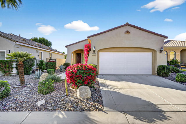 Welcome to this beautifully maintained Canterra floor plan, offering 1,257 square feet (EST.) of comfortable, thoughtfully designed living in the premier 55+ active adult community of Sun City Shadow Hills. Built in 2009, this charming 2-bedroom, 2-bathroom home blends modern convenience with the ease of desert living. Inside, the great room is bright and inviting, enhanced by western exposure and picturesque views of the lush backyard landscaping. The kitchen features rich wood cabinetry, granite countertops, stainless steel appliances, a breakfast bar, and a cozy breakfast nook--providing ample prep and storage space for both everyday meals and effortless entertaining. The primary suite offers a relaxing retreat with peaceful views of the beautifully landscaped yard, an ensuite bathroom with dual vanities, and a spacious step-in shower. A well-appointed guest bedroom and nearby full bath provide comfortable accommodations for visitors or a flexible space for hobbies or a home office. Step outside to a serene, low-maintenance backyard designed with privacy and enjoyment in mind. Multiple seating areas, vibrant mature landscaping, and plenty of room for dining or lounging create an inviting outdoor environment perfect for morning coffee or evening gatherings. Additional highlights include an indoor laundry room, a two-car garage, and energy-efficient features throughout. Residents of Sun City Shadow Hills enjoy access to world-class amenities, including two clubhouses, championship golf, fitness centers, pools, tennis and pickleball courts, and a wide variety of social clubs and activities. This delightful home is a wonderful opportunity to embrace the vibrant, relaxed lifestyle that Sun City Shadow Hills is known for. Don't miss your chance to make it yours!