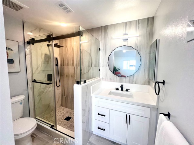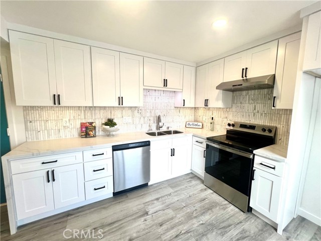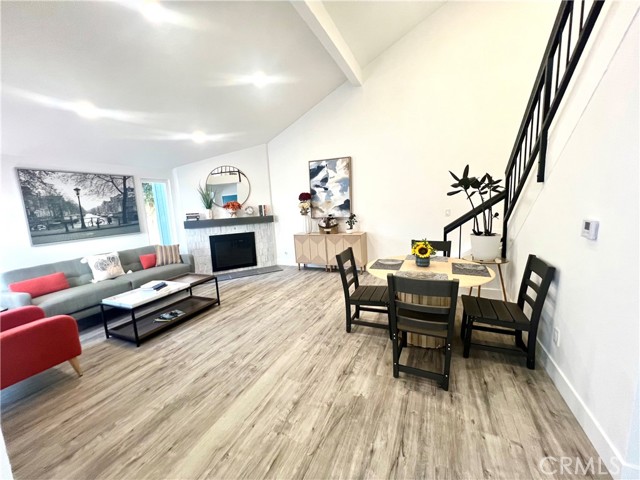 Your search ends today! Come see this stunning 2-story turn-key condo has been fully and beautifully upgraded from top to bottom! Walk in and be greeted by a high ceiling living room finished with a newly marble tile fireplace and newly stained mantle, the perfect spot to enjoy with family and friends. Then make your way to the fully remodeled kitchen, equipped with new cabinets with LED lighting, quartz countertops, newly marble tile backsplash, and brand-new stainless-steel dishwasher and stove and Recessed light throughout. Up the stairs you will see that the condo is entirely, freshly painted and with new 100% waterproof vinyl flooring throughout. As well, the 2 full bathrooms upstairs are both newly and tastefully tiled, with all new bathroom fixtures, 1 tub and 1 shower. Lastly, the HOA of Woodside Village offers great value, service, and amenities. It covers all utilities except electricity, as well as access to their pools, a spa, clubhouse and BBQ. The HOA also provided recent upgrades including a full roof replacement, exterior trim replacement, fresh paint, and installation of new security gates around the entire complex! Without any neighbors above or below your unit, a private patio, and central heat and air, this home is perfect for your family to live and enjoy. Wonderfully located near South Coast Plaza and the 405 HWY, you will have convenient access to great restaurants, shopping centers, and the highly sought after Greenville Fundamental Elementary School and Segerstrom High School. Do not miss your opportunity at this quality condo unit, in a safe and quite gated community, it won’t last long. This is one you will truly appreciate when you see it.