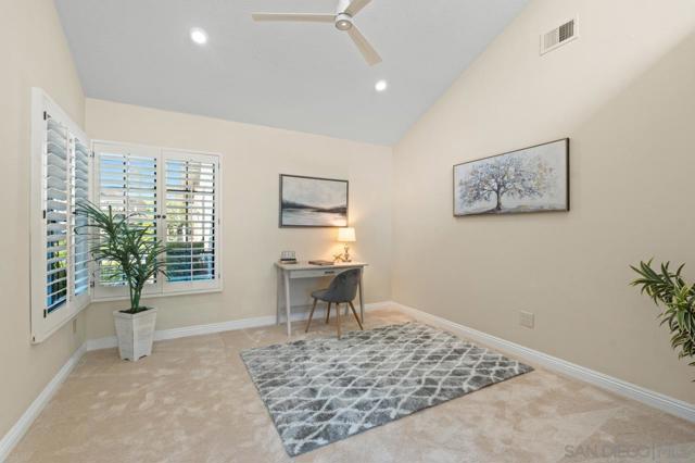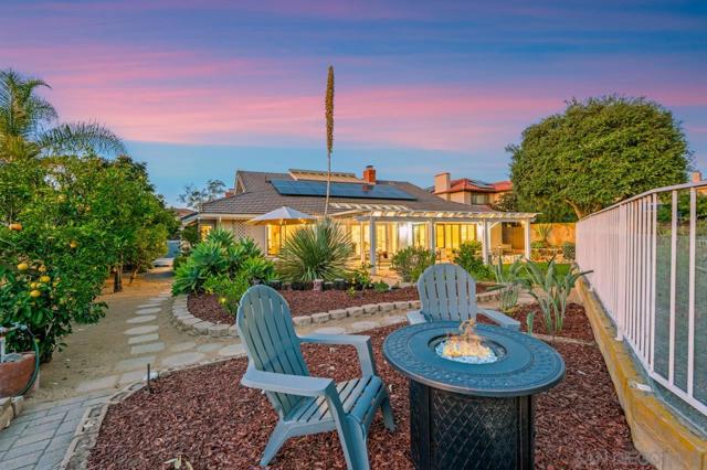 Experience refined single-level living in this sun-filled residence in the highly sought-after Chantemar community. Designed for comfort and relaxed elegance, the open floor plan features a spacious living room with vaulted ceilings, a cozy fireplace with built-in shelving, and skylights with electronic shades. The chef’s kitchen offers granite countertops, rich wood cabinetry, and opens to a warm family room with a fireplace and seamless access to the side yard—ideal for outdoor cooking. A formal dining room provides an inviting setting for entertaining with sweeping views of the backyard and open space. The expansive primary suite includes plantation shutters, a generous walk-in closet, dual sinks, a soaking tub, and tranquil views across the yard and canyon. The backyard is an entertainer’s delight with a stylish Alumawood patio cover, paver dining terrace, lush landscaping, manicured lawn, citrus trees, and scenic canyon vistas. Additional highlights include fully paid solar and a three-car garage. Chantemar is a peaceful, picturesque neighborhood south of Pomerado in the heart of Scripps Ranch. Surrounded by mountains, canyons, mature landscaping, and scenic trails, the community offers a family-friendly atmosphere and strong sense of connection. Enjoy nearby Fairbrook Park and private Chantemar amenities—including a pool, spa, playground, and tennis courts—plus close proximity to parks, walking trails, Lake Miramar, shopping, dining, and top-rated schools. A formal dining room provides an inviting setting for entertaining with sweeping views of the backyard and open space. The expansive primary suite includes plantation shutters, a generous walk-in closet, dual sinks, a soaking tub, and tranquil views across the yard and canyon. The backyard is an entertainer’s delight with a stylish Alumawood patio cover, paver dining terrace, lush landscaping, manicured lawn, citrus trees, and scenic canyon vistas. Additional highlights include fully paid solar and a three-car garage. Chantemar is a peaceful, picturesque neighborhood south of Pomerado in the heart of Scripps Ranch. Surrounded by mountains, canyons, mature landscaping, and scenic trails, the community offers a family-friendly atmosphere and strong sense of connection. Enjoy nearby Fairbrook Park and private Chantemar amenities—including a pool, spa, playground, and tennis courts—plus close proximity to parks, walking trails, Lake Miramar, shopping, dining, and top-rated schools.