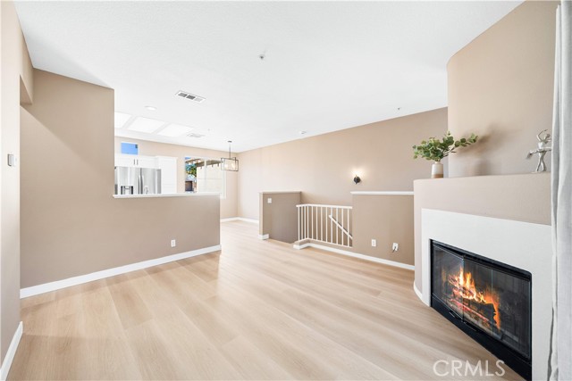This beautifully maintained upper-level unit offers exceptional privacy with no neighbors above or below and is situated in the highly desirable Vineyard community. Thoughtfully designed for comfort and functionality, the open-concept layout is filled with natural light and enhanced by brand-new luxury vinyl flooring, fresh interior paint, neutral designer tones, custom lighting, and a newer water heater. The spacious living room features a cozy fireplace and opens to a private terrace—perfect for indoor/outdoor living, whether you’re relaxing with a book or entertaining guests. The bright and inviting kitchen has been tastefully updated with new shaker cabinets, quartz countertops, upgraded stainless steel appliances, and rich cabinetry detailing. With generous counter space and seamless flow into the dining and living areas, it is ideal for gatherings and everyday living. The primary suite offers a peaceful retreat, complete with a bathroom featuring modern fixtures, custom lighting, and a tub. A secondary bedroom and full guest bath provide comfort and flexibility for guests, family, or a home office. Additional highlights include a one-car attached garage with direct access, an assigned parking space, and community amenities such as a pool and spa. Enjoy convenient access to shopping, dining, and entertainment at Foothill Ranch Towne Center, as well as close proximity to the Irvine Spectrum, Great Park, and scenic outdoor adventures in Whiting Ranch and Limestone Canyon. With low HOA dues and no Mello-Roos, this home is truly a must-see.