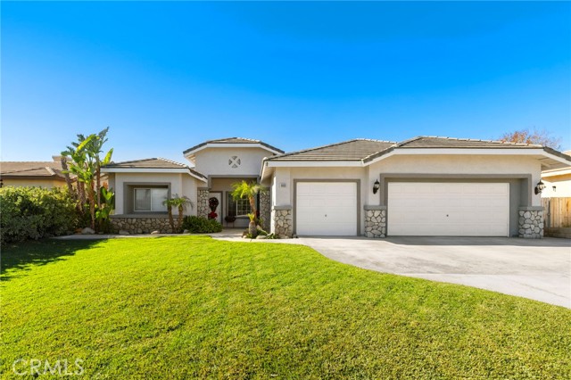 Relax at your single story forever home with 4 spacious bedrooms and 3 full bathrooms! One of the guest bedrooms has its own bathroom and this sought after home is a single story! Perfect for a second master bedroom or in laws quarters. There are NO HOMEOWNERS ASSOCIATION FEES! The spacious inviting floorplan has lots of natural light as well as dramatic vaulted ceilings. The guest bathroom has a double sink vanity, and the master retreat has an oversized walk-in closet! The interior laundry room is just off the giant three car garage with a giant driveway for lots of extra parking! So much to offer with every attention to detail at this delightful family home with an incredible open floorplan with a formal dining way and breakfast nook. Enjoy your morning coffee at the breakfast bar and or cozy up the family room's beautiful fireplace. The living room is spacious, and the gorgeous wood flooring really is a nice complement to the soothing paint colors and every attention to detail has been given to this incredible floorplan. Enjoy the sunsets and the cool gentle breeze that rolls in every day. The front yard is a true haven with the most beautiful grass you have ever seen. The front foyer has plenty of room for you to sit outside and enjoy the morning sunshine. Truly a private and quiet home with block walls in the back yard for added privacy and serenity. Come home to a lifestyle and enjoy all that Rialto has to offer. So close to all transportation, shopping and restaurants. Wonderful schools and such a great community of neighbors. A wonderful place to be. So much to offer and a fantastic neighborhood. So close to the mountains and not that far from where you wish to go! Plenty of room out back for your family pets and or outdoor recreation. This home has something for everyone. Lots of kitchen cabinets and storage with an open and inviting floorplan. Come on over and enjoy all that this splendid home has to offer. Contemporary and charming. Even has 3 sliders out the back yard!