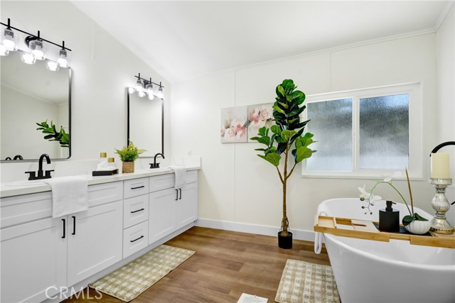 Welcome to 1730 San Simeon Drive, where high-end renovation meets unbeatable value. This beautifully remodeled triple-wide home on owned land in Sierra Dawn Estates is truly one of a kind. A new roof, repipe, and full renovation provide peace of mind and modern comfort—paired with a price point that makes this one of the strongest values in the entire neighborhood. This 2 bedroom, 2 bath property features a rare attached 2-car garage and the spacious design only a triple-wide can offer. Step inside to an airy open floor plan with vaulted ceilings, designer finishes, and wide-plank luxury vinyl flooring throughout. Large windows and French doors fill the space with natural light, creating a warm and inviting atmosphere. The completely remodeled kitchen is the heart of the home, showcasing soft-close shaker cabinets, quartz countertops, stainless steel appliances, and an oversized island that opens to a second living area perfect for entertaining family and friends. The formal dining room includes a built-in buffet with mirrored shelving, adding both storage and style. The primary suite offers a true retreat with a freestanding soaking tub, walk-in shower, and dual vanities. A large laundry room provides additional cabinetry, a quartz folding counter, and a utility sink. The attached garage offers convenience and rare storage, while the bonus sitting area features mountain views and a quiet place to unwind. This home is 433A certified and eligible for Conventional, FHA, and VA financing. HOA dues are just $168 per month and include access to multiple pools, spas, dog parks, and clubhouses in one of Hemet’s most desirable 55+ communities. Every major system has been upgraded for ease of ownership, and the home showcases meticulous attention to detail throughout. Move right in and enjoy the comfort and quality of a high-end renovation without the premium price tag. Homes like this—triple-wide, on owned land, fully renovated, and with a two-car garage—rarely come to market. Don’t wait. Schedule your showing today and experience one of the best values in Sierra Dawn Estates.