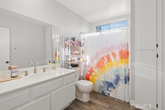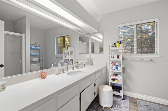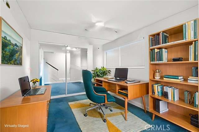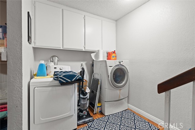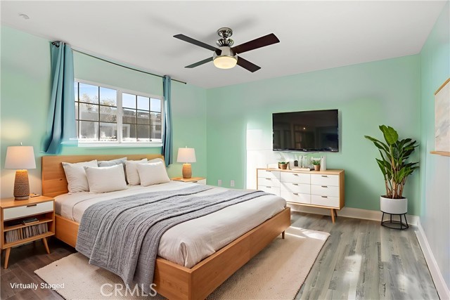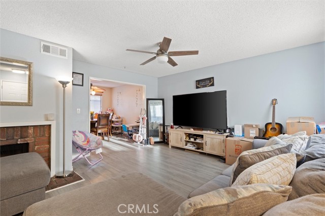 Welcome to this spacious and thoughtfully designed townhome offering 1,348 square feet of comfortable living in San Fernando. The home features two generously sized bedrooms plus a versatile bonus room on the ground level that may serve as a potential third bedroom, home office, workout space, or creative studio. This room includes a closet and two windows, offering flexibility to meet a variety of needs. A convenient half bathroom is located downstairs for guests, while upstairs includes a full bathroom with tub and shower, accented by a window that fills the space with natural light. The expansive primary suite offers exceptional space, highlighted by a wall-to-wall closet plus an additional closet and a private bathroom with an oversized vanity providing ample room to spread out. The partially remodeled kitchen has been opened up by removing overhead cabinetry, creating an inviting eat-in kitchen that flows seamlessly into the dining area. Natural light pours in through the window over the sink, and generous pantry storage adds everyday convenience. Newer natural gray-tone laminate flooring runs throughout the home, complementing the warm fireplace anchoring the living room. Large sliding glass doors open to a spacious second-level patio, ideal for relaxing or entertaining. Additional features include a two-car garage with direct access, a dedicated laundry room with storage, and access to community amenities including a pool, hot tub, and dog-friendly facilities. Ideally situated within the community, this home offers comfort, flexibility, and a welcoming atmosphere ready to be enjoyed.