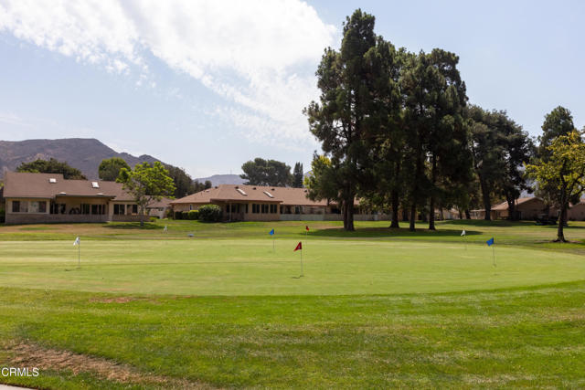 This El Dorado model home backs to the golf course and sits with an amazing back end view of the course as well as the Santa Monica mountains in the back drop. This is one of the most popular models in the community. This one has newer flooring and a newer HVAC system. This home is priced to allow you to make your preferred improvements. There is a newer HVAC system here. This location is the type of location that makes the saying location, location, location popular.The home has 2 bedrooms and a den and 2 baths. The home has a nice large kitchen as well as a dining area plus the living room. The home has a large outdoor patio area overlooking the golf course.