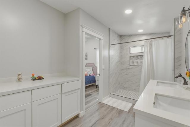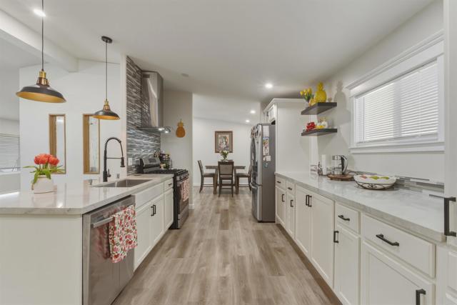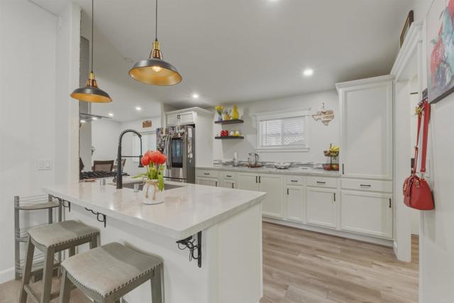 All-Age Community. Beautifully renovated and move-in ready, this 1,680 sq. ft. 3-bedroom, 2-bath manufactured home showcases thoughtful craftsmanship and modern design throughout. Recently refreshed inside and out, the home offers a light, airy feel enhanced by LED recessed lighting and waterproof laminate flooring throughout. The kitchen features quartz countertops, stainless steel appliances, a new hood, modern cabinetry, and a breakfast bar accented by hanging cast iron lighting. Custom door frames, new interior doors, and carefully finished details reflect pride of ownership and attention to quality. Both bathrooms have been tastefully upgraded with tile showers, built-in soap niches, and a dual-sink vanity in the primary suite. Additional highlights include solar panels and a spacious three-car carport. Residents enjoy community amenities including a pool, spa, clubhouse, RV/boat parking, guest parking, and dog-walk areas. Conveniently located near major highways, beaches, shopping, and Costco. A thoughtfully upgraded home offering comfort, style, and convenience.