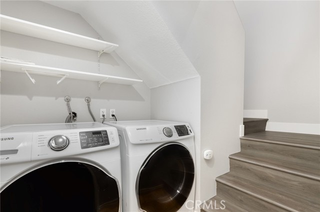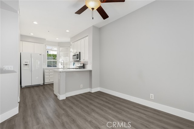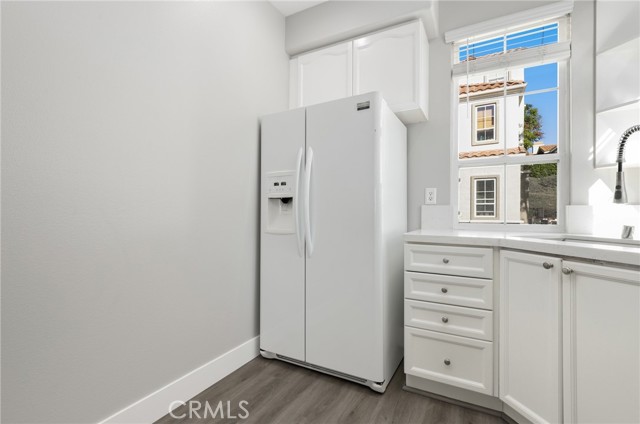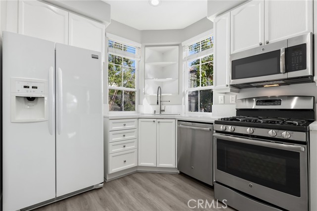 Welcome to this stunning corner-unit condo, perfectly situated in the highly sought-after, resort-style Corte Melina community in the heart of Rancho Santa Margarita. Flooded with natural light, the open and inviting floor plan features waterproof vinyl plank flooring, fresh paint, a cozy fireplace, and expansive windows that create a bright, airy atmosphere. The fully renovated kitchen is a true centerpiece, showcasing crisp white cabinetry, quartz countertops and backsplash, stainless steel appliances and sink, recessed lighting, and a charming garden window. Seamlessly connected to the dining and living areas, it’s perfect for entertaining or everyday living. An in-unit washer and dryer adds everyday convenience. The spacious master suite features a remodeled bathroom with a quartz double-sink vanity, a relaxing bathtub, and a private balcony. Additional highlights include a smart thermostat and direct access to the one-car garage. Enjoy low HOA fees and Mello Roos while taking advantage of premier community amenities, including a sparkling pool and spa, clubhouse, gym, dog park, scenic RSM Lake, Splash Park, Lago Santa Margarita, Beach Club Lagoon, sports courts, hiking and biking trails, and playgrounds. Located in the award-winning school district, this home offers exceptional value. Just minutes from O’Neill Regional Park, shopping, dining, and with easy access to the 241 Toll Road, this rare corner- unit condo is move-in ready and thoughtfully upgraded, combining elegance, comfort, and lifestyle. Schedule your private tour today to experience the finest in Rancho Santa Margarita living!