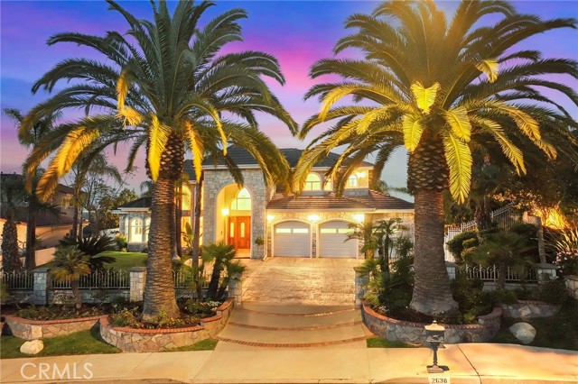 View! View! View! This luxury custom built estate with 5 Bedrooms, 5.5 bathrooms (2-bedroom 2.5 bathrooms downstairs), plus a home office and a bonus room downstairs, a loft and a sunroom upstairs, 3-car garage. Grand entryway showcases soaring ceilings, crystal chandelier, elegant columns, and striking architectural details. The living room features large windows that bring in plenty of natural light and a fireplace with built-in shelves on both sides. It’s a comfortable and open space. Family room with cozy fireplace and mini wet bar area. Formal dining room with a crystal chandelier. The remodeled kitchen features new quartz countertops, center island, resurfaced cabinets, stainless-steel appliances, including, built-in Subzero refrigerator, new KitchenAid built-in microwave, new oven, kitchen hood, dishwasher and cooktop. Separate Wok kitchen with cabinets perfect for additional cooking needs. The home office/library has built-in bookshelves. Downstairs has two guest suites, both fully upgraded with brand-new bathrooms. One of the guest rooms even has direct access to the backyard. The spacious primary suite offers a peaceful retreat area, a private balcony with breathtaking mountain views, the perfect spot to unwind and take in nature’s beauty. New primary bathroom with dual dual sinks, free standing bathtub, large shower with frameless glass enclosures, and a sauna room. All other bathrooms upgraded. The bright and airy sunroom featuring a glass ceiling and large windows, making it an ideal space for a home gym or relaxation area. Beautiful resort style backyard features a tranquil fountain, cascading waterfall, sparkling pool and spa, BBQ island and a charming pavilion. A lot of palm and fruit trees. Enjoy the panoramic mountain, city lights views. In the prestigious gated community of Grande Pointe. Great location, close to shopping centers, schools, and city facilities. Excellent California Distinguished Rolling Ridge elementary, Canyon Hills Junior High and Ayala High.