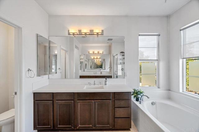 Welcome to this beautiful home in the Montecito at Otay Ranch community. Built in 2015 and set on a premium corner lot with serene greenspace views. The home features a bright open layout with a modern kitchen offering granite countertops, stainless steel appliances, a large center island, and a walk-in pantry—perfectly connected to the family room. A bedroom and full bathroom are conveniently located on the main floor. Upstairs, you’ll find the spacious primary suite with an en-suite bathroom featuring dual vanities, a soaking tub, a separate walk-in shower, and a generous walk-in closet, along with additional bedrooms and a versatile loft. The home is further enhanced by fully paid solar panels and two Tesla Powerwall batteries, providing energy efficiency, lower utility costs, and peace of mind. Enjoy outdoor living with a low-maintenance backyard, patio, and built-in BBQ—ideal for entertaining. Residents also enjoy resort-style amenities including a pool, spa, gym, trails, clubhouse, and more, all just minutes from shopping, dining, top-rated schools, and the I-125.