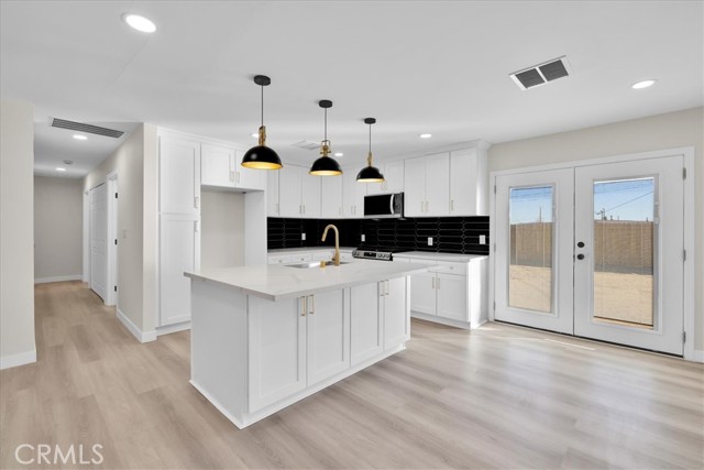 Welcome to this beautifully redone 3-bedroom, 1.5-bath masterpiece where no detail was overlooked. From the moment you step inside, you’ll notice the high-end finishes and thoughtful upgrades, including elegant gold hardware accents that elevate the home’s modern design. The interior has been completely refreshed with quality craftsmanship throughout, offering a clean, stylish, and move-in-ready space. Mini-split systems provide efficient heating and cooling, ensuring year-round comfort. Outside, enjoy a fully fenced backyard, perfect for pets, entertaining, or simply relaxing under the desert sky. Conveniently located just minutes from the military base and Joshua Tree National Park Entrance, this home is ideal for anyone seeking comfort, style, and proximity to local amenities. A rare blend of modern upgrades, function, and location—this one truly shines.